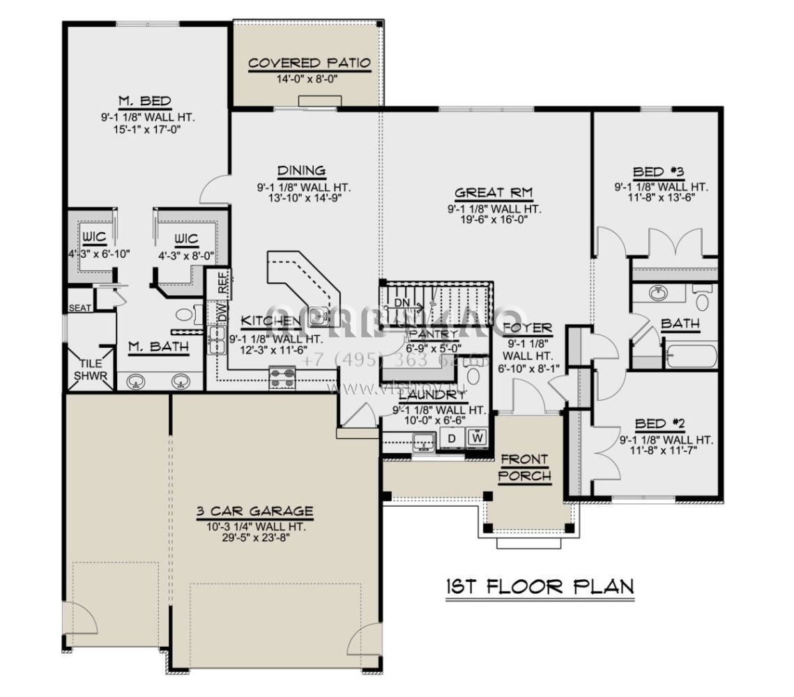 Проект одноэтажного дома с гаражом на три и более машин в американском стиле S5-190 (5032-00004)
