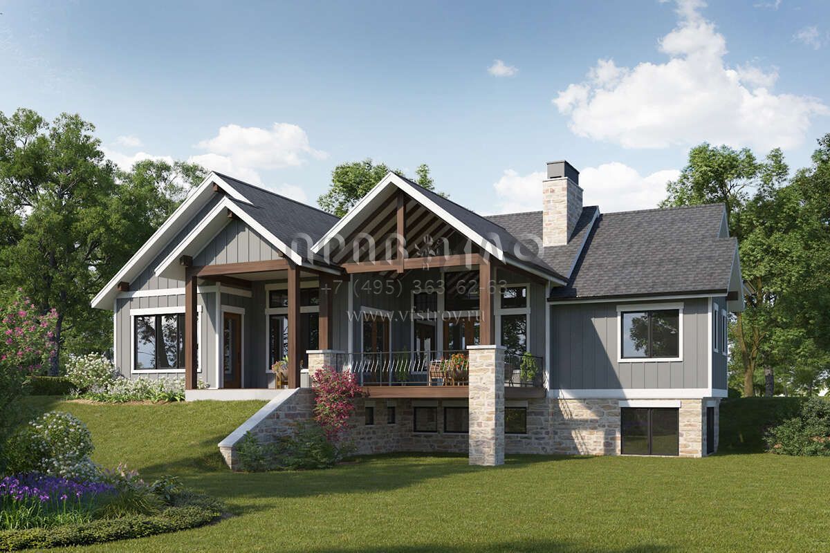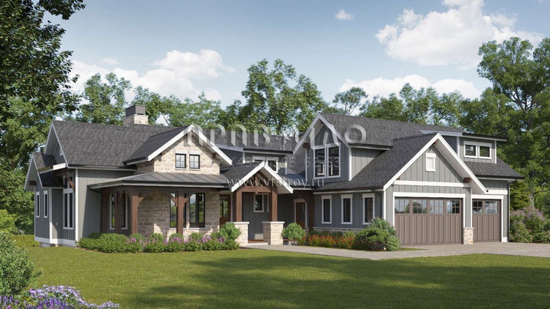Проект одноэтажного дома с гаражом на три и более машин в американском стиле S5-190 (5631-00158)