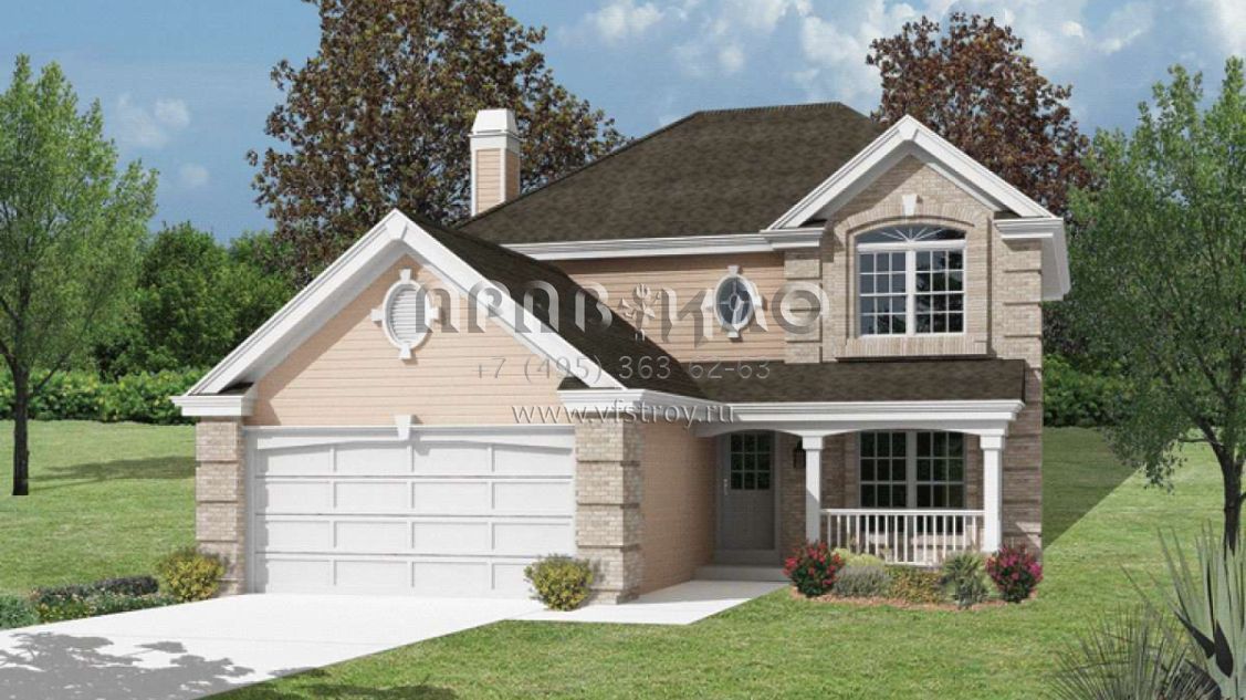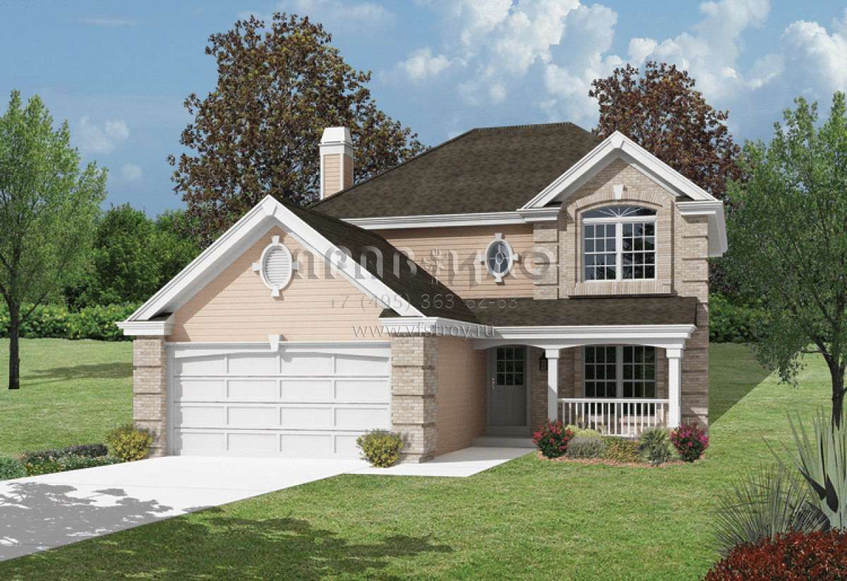 Это проект двухэтажного дома с гаражом на две машины жилой площадью 190 кв.м. Длина дома 15.2 м, ширина 11.3 м, высота 8.8 м. В доме четыре спальни и два санузла.