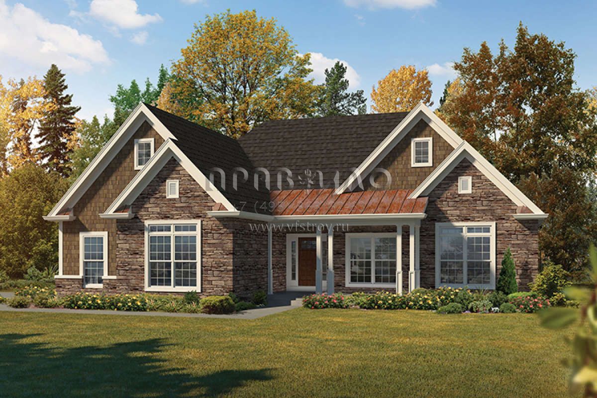 Проект одноэтажного дома с гаражом на две машины в стиле Ранчо S5-190 (5633-00286)