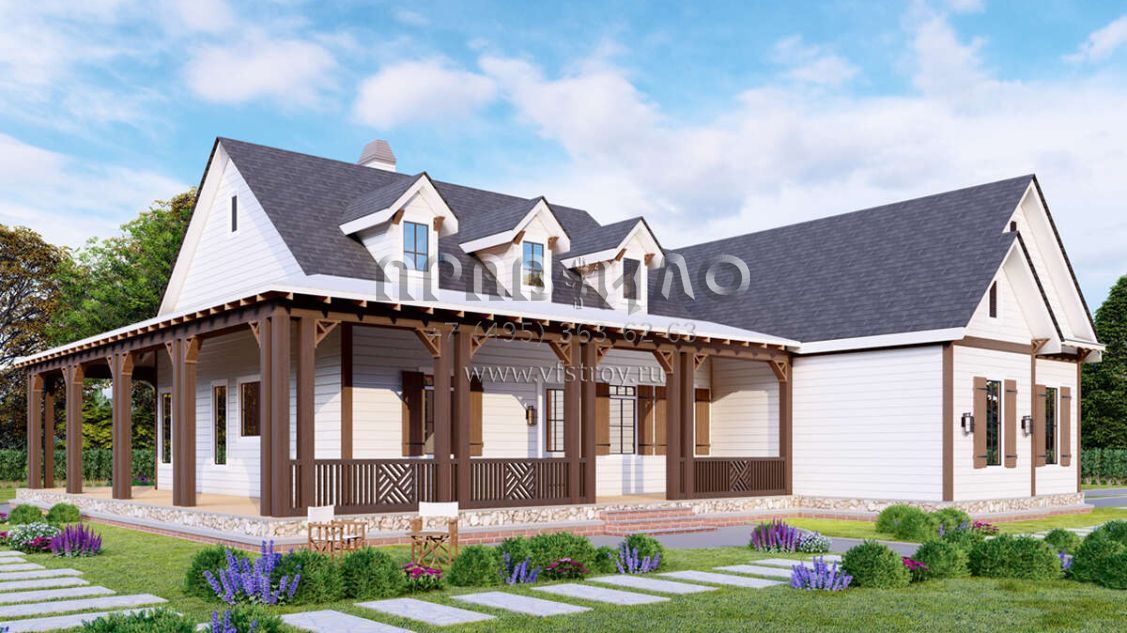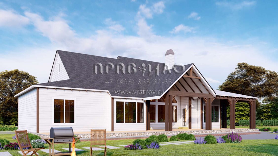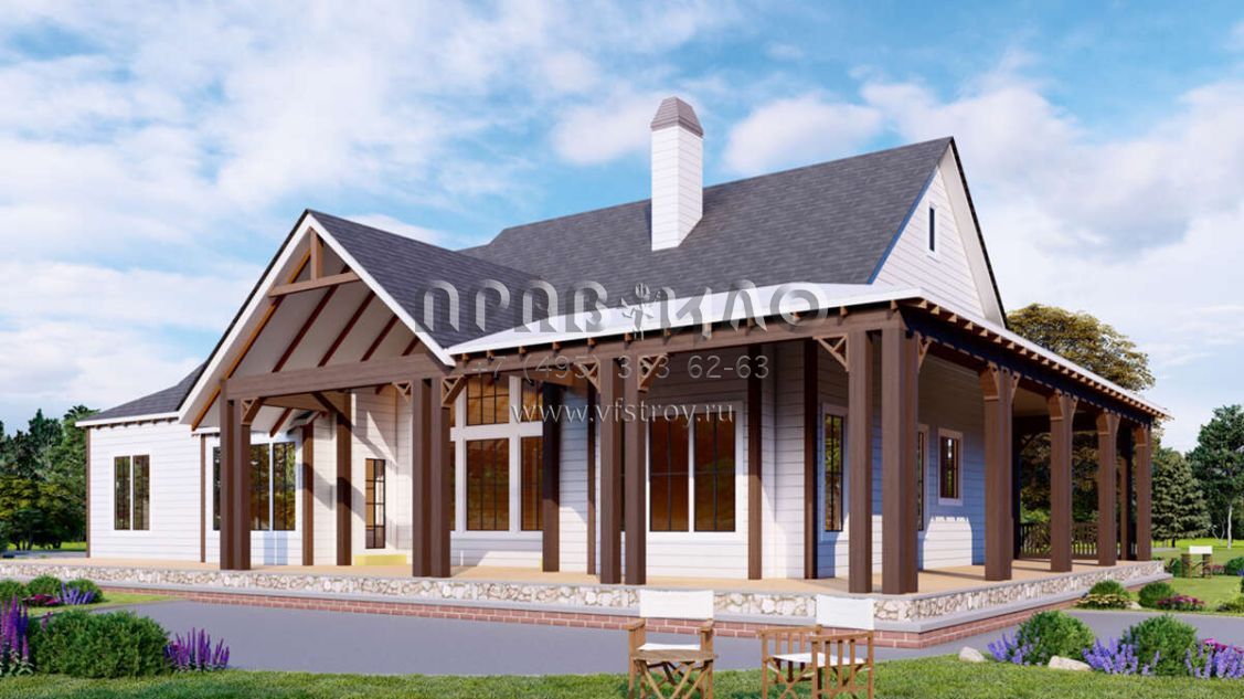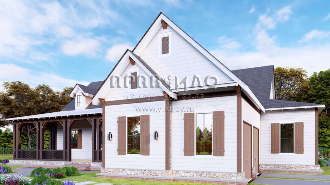 Проект одноэтажного дома с гаражом на две машины в стиле Ранчо S5-190 (699-00055)