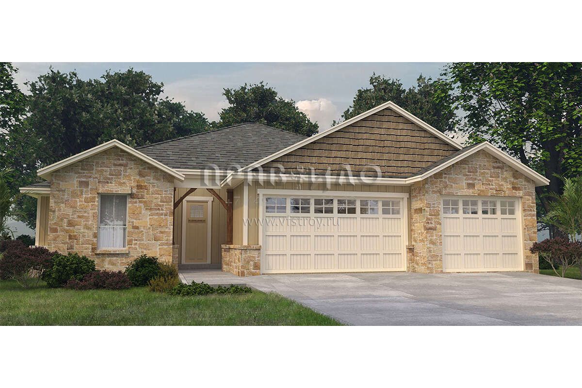 Проект одноэтажного дома с гаражом на три и более машин в стиле Ранчо S5-190 (9300-00086)