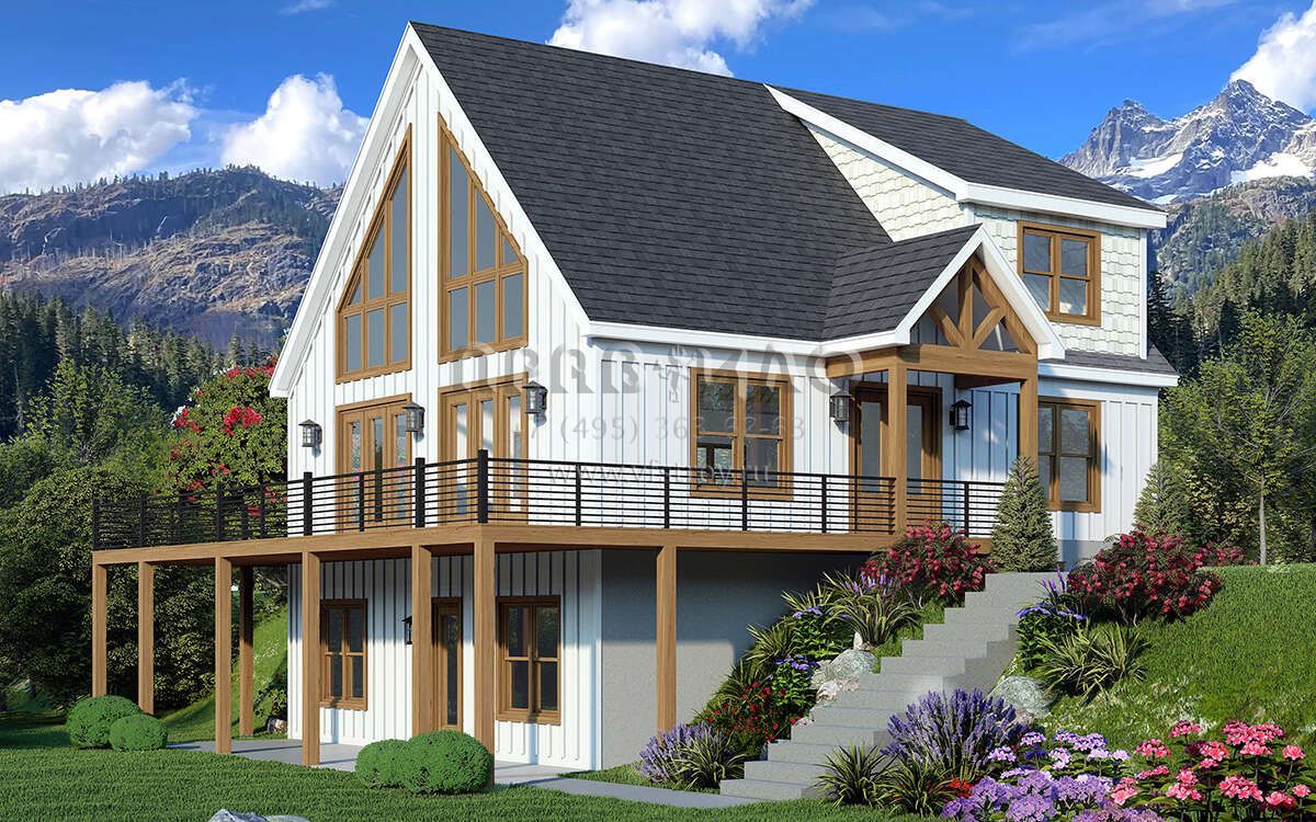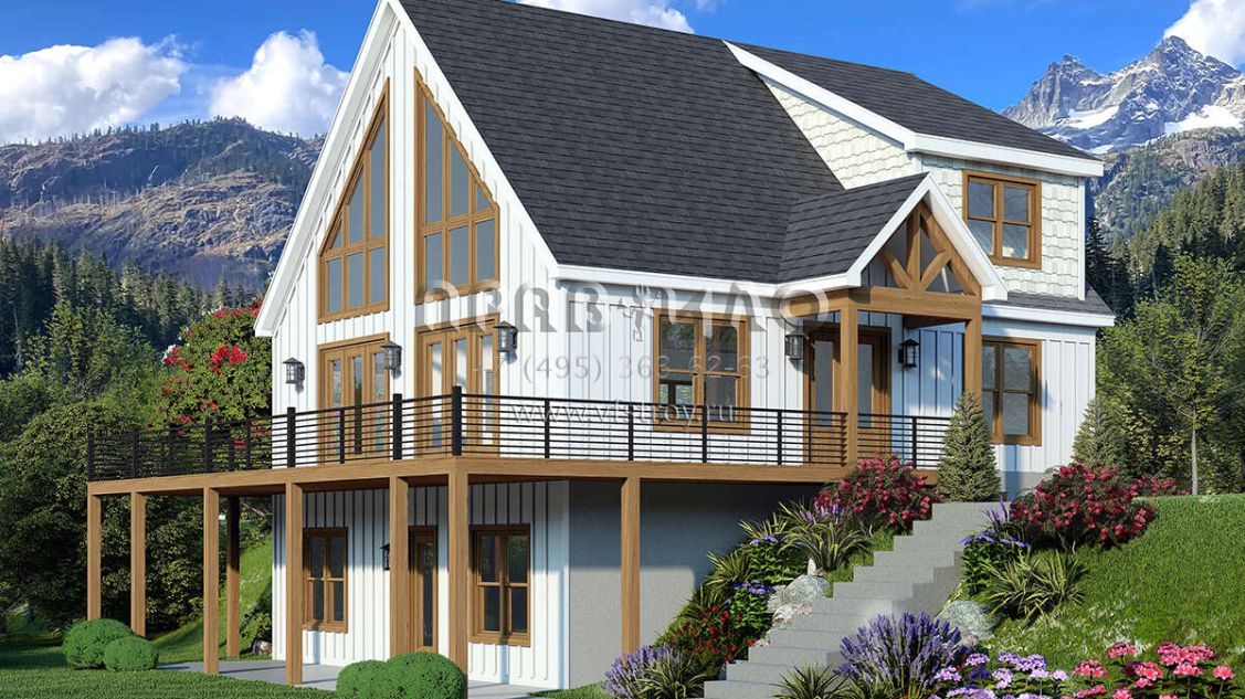 Проект двухэтажного дома без гаража в стиле Шале S5-190 (940-00965)