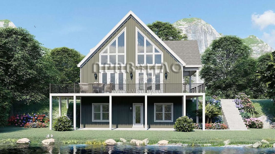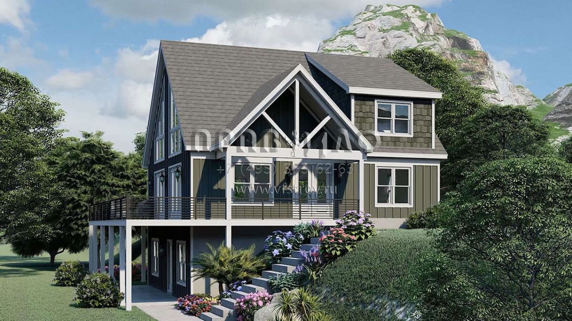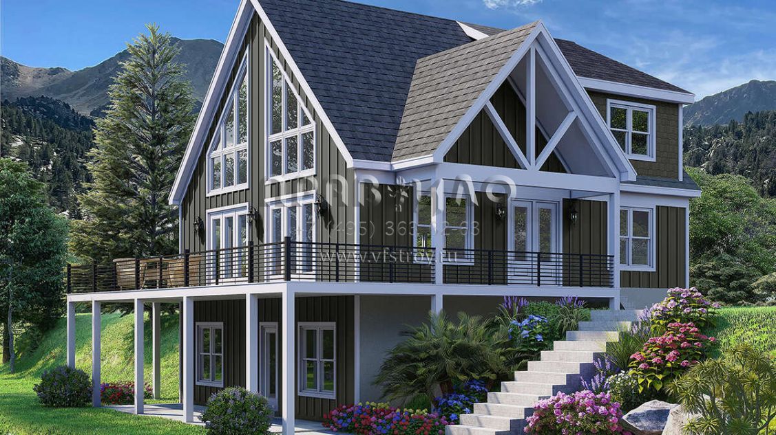 Проект двухэтажного дома без гаража в стиле Шале S5-190 (940-00979)