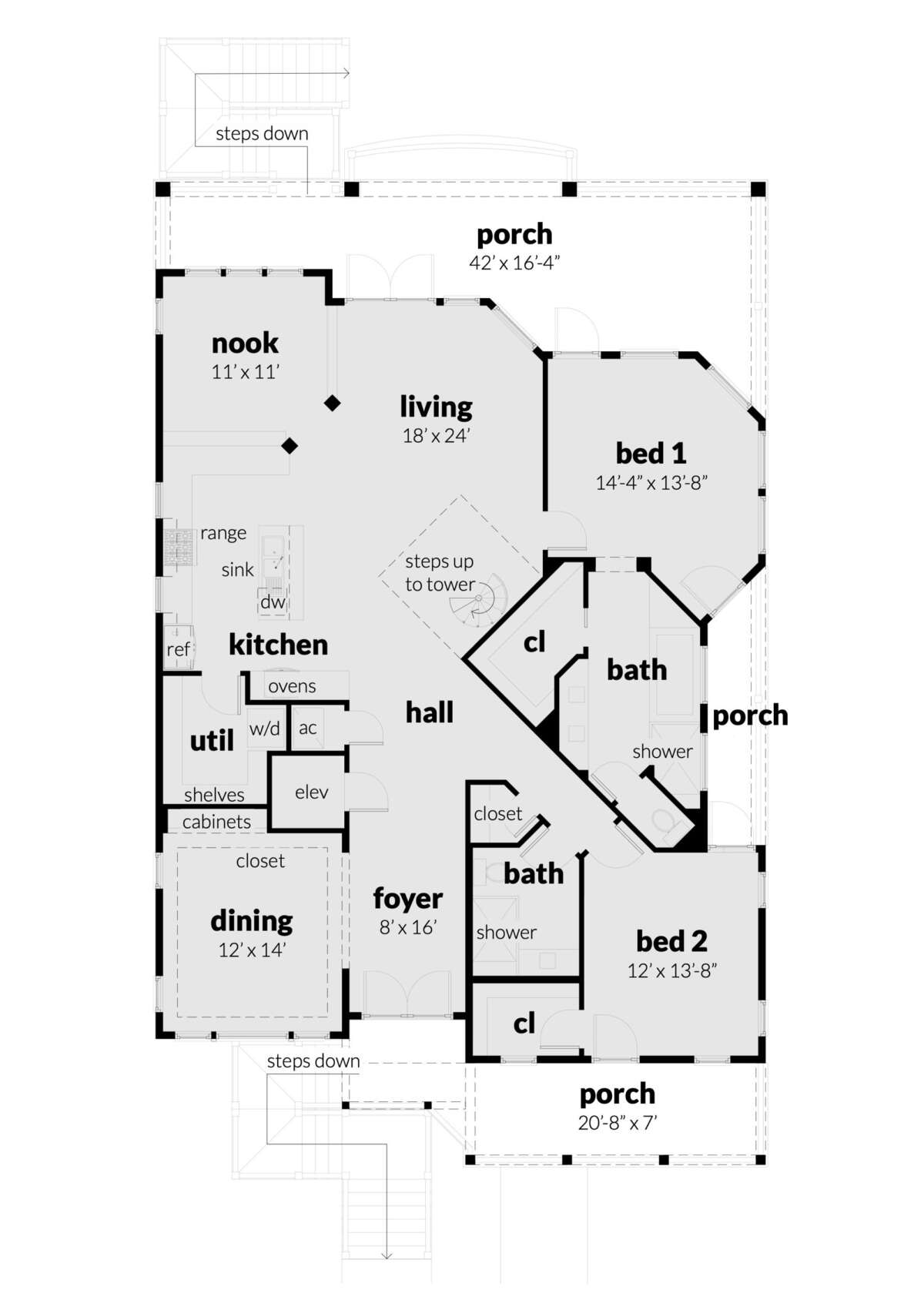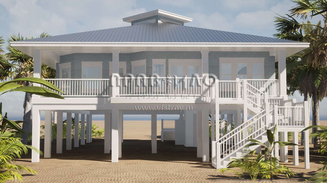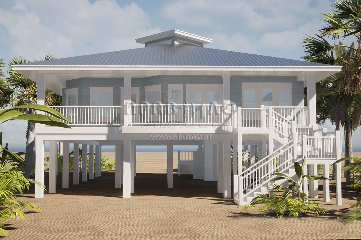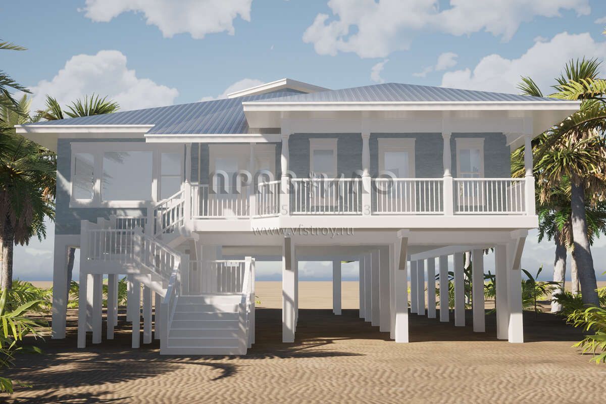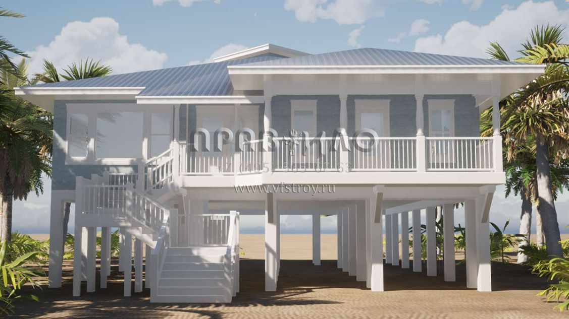 Проект одноэтажного дома без гаража в прибрежном стиле S5-191 (028-00057)