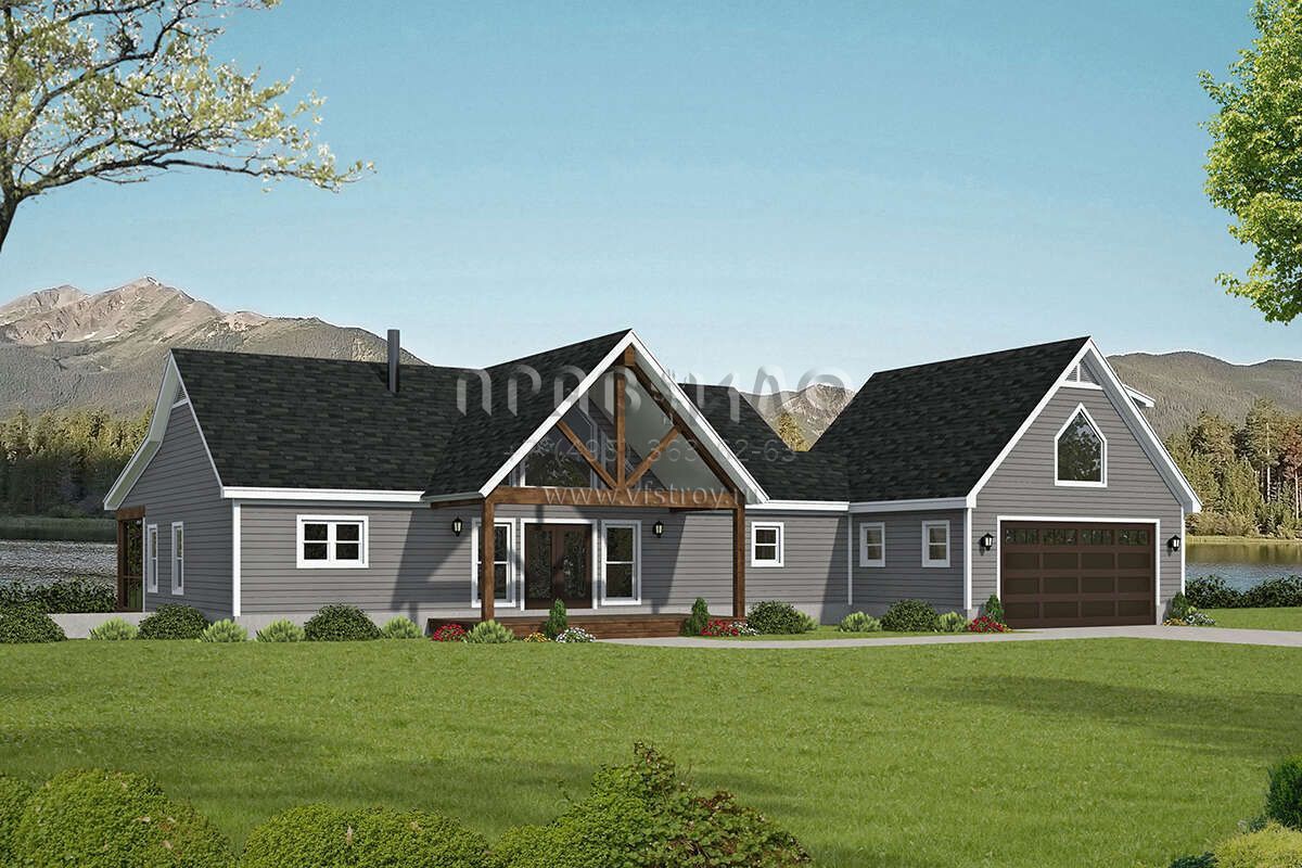 Проект двухэтажного дома с гаражом на две машины в стиле Шале S5-191 (940-00696)