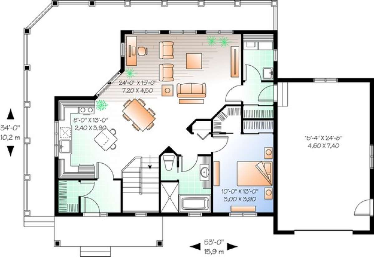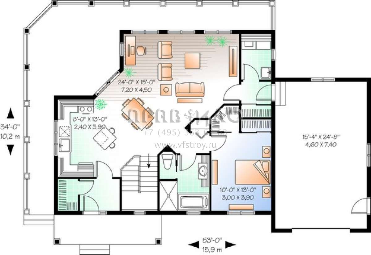Проект одноэтажного дома с гаражом на одну машину в стиле Ранчо S5-192 (034-01041)
