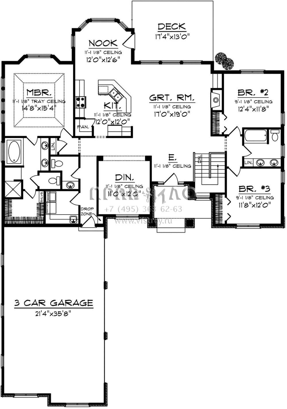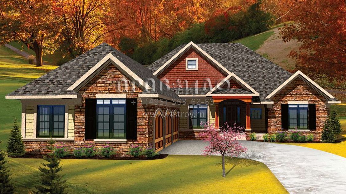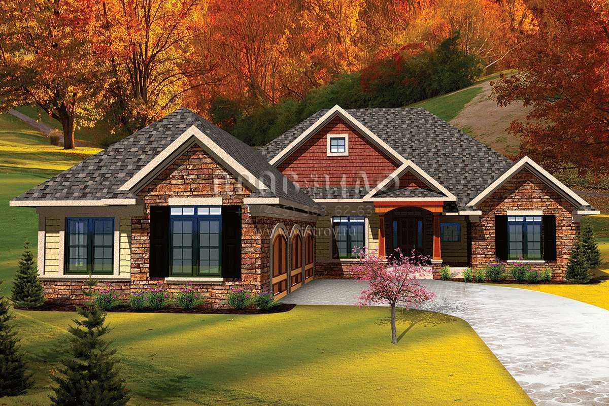 Проект одноэтажного дома с гаражом на три и более машин в американском стиле S5-192 (1020-00308)
