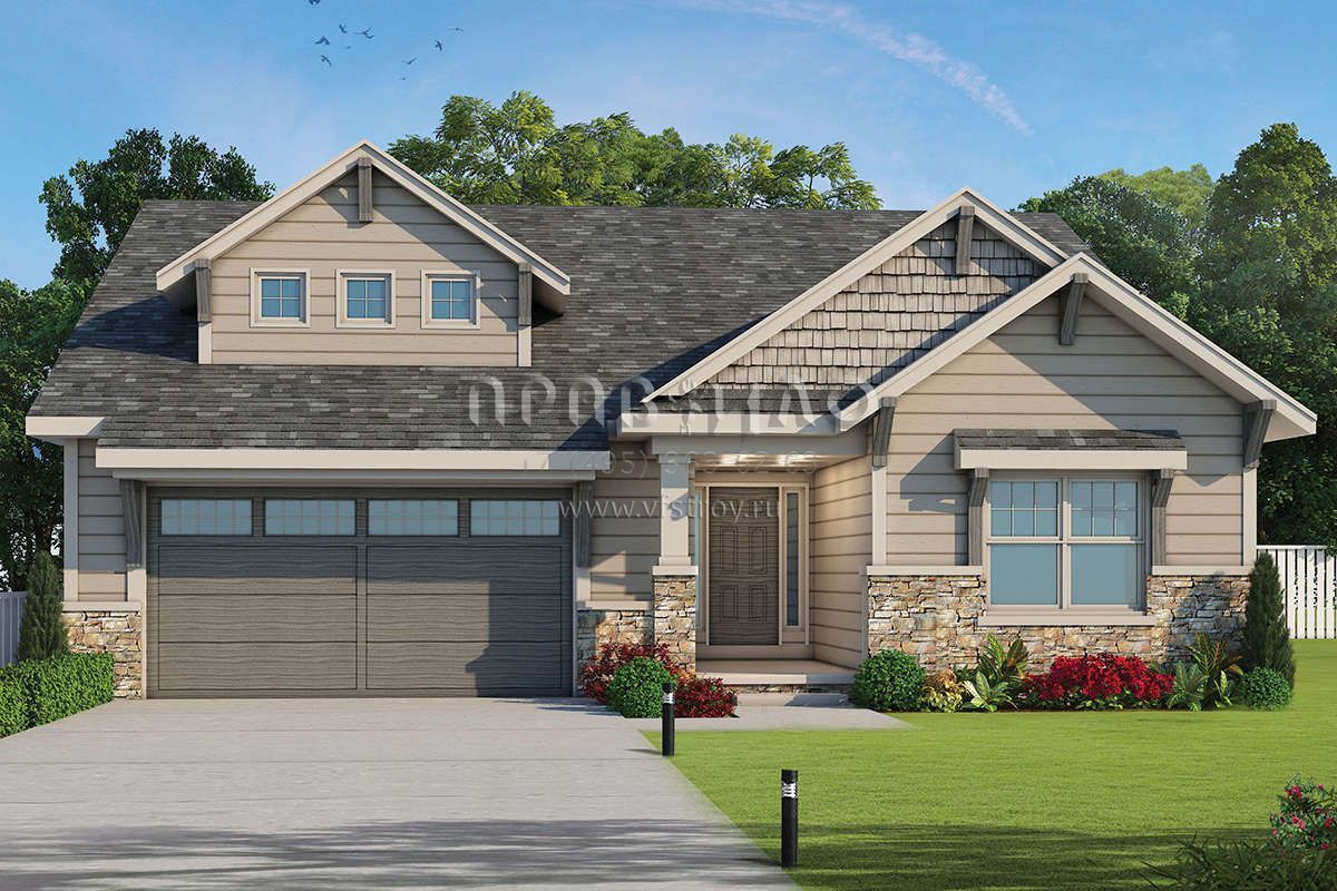 Проект одноэтажного дома с гаражом на две машины в американском стиле S5-192 (402-01522)