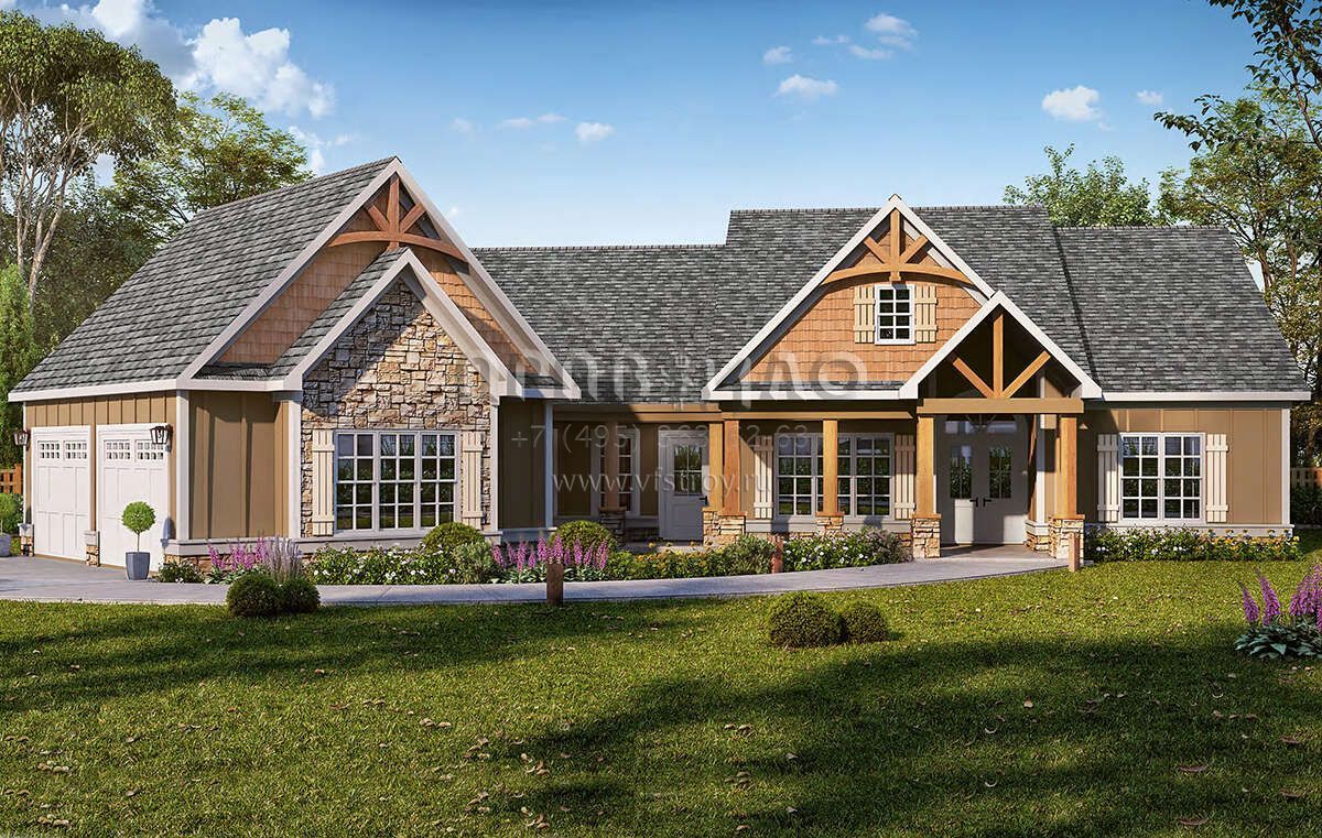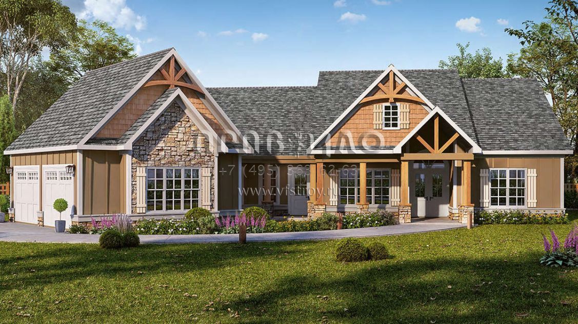 Проект одноэтажного дома с гаражом на две машины в американском стиле S5-192 (6082-00200)