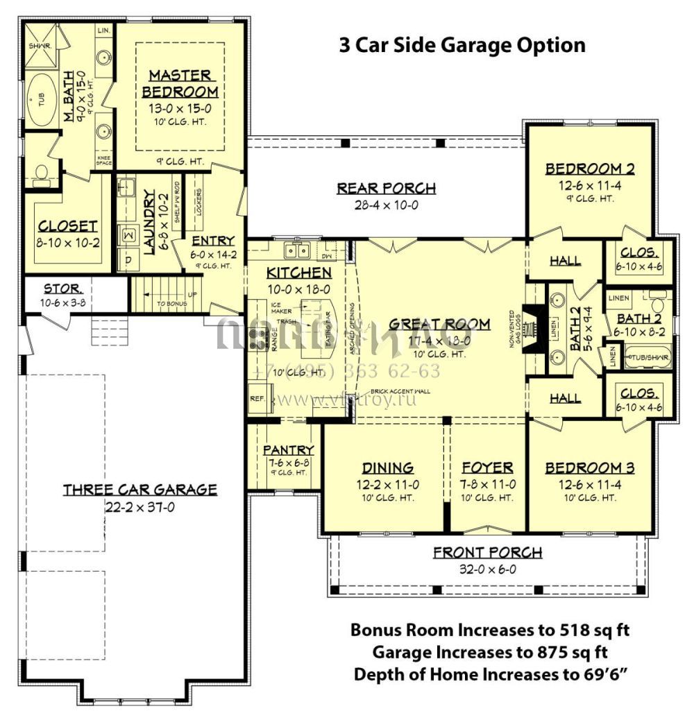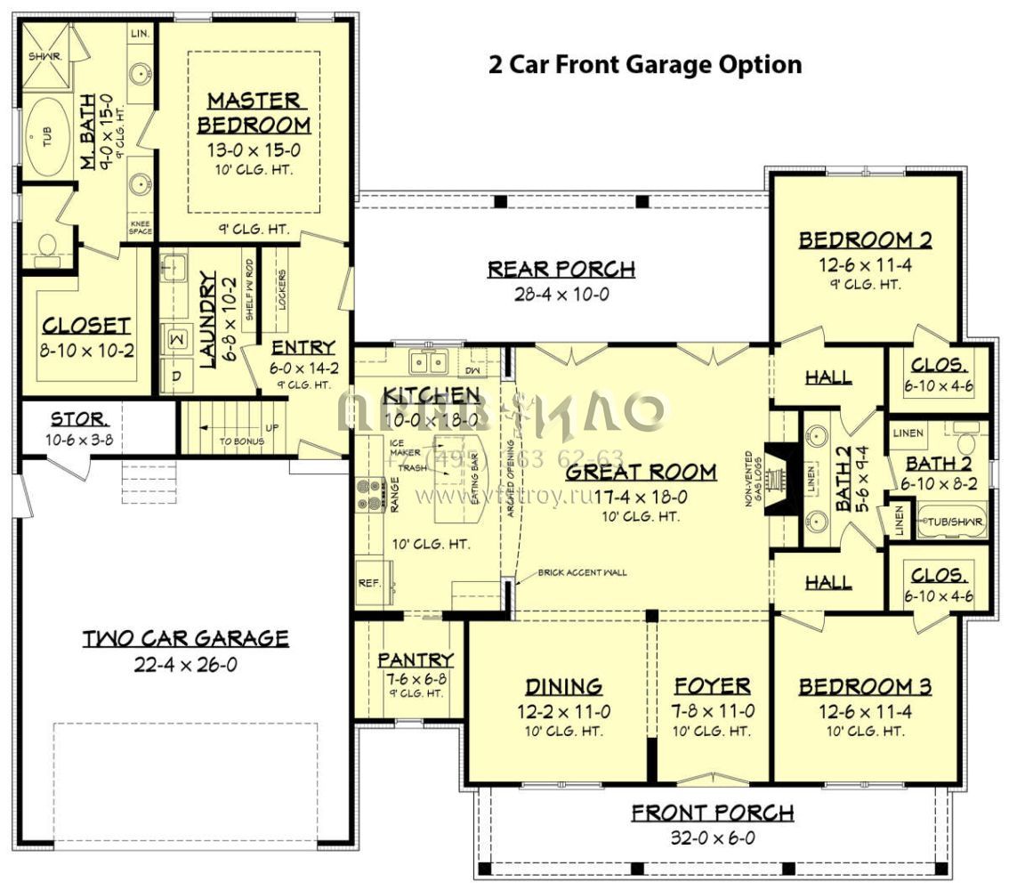 Проект одноэтажного дома с гаражом на две машины в стиле Ранчо S5-193 (041-00168)