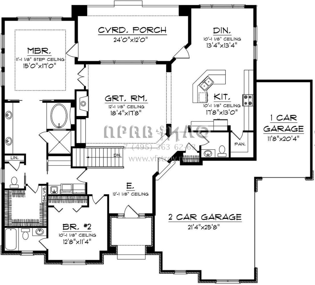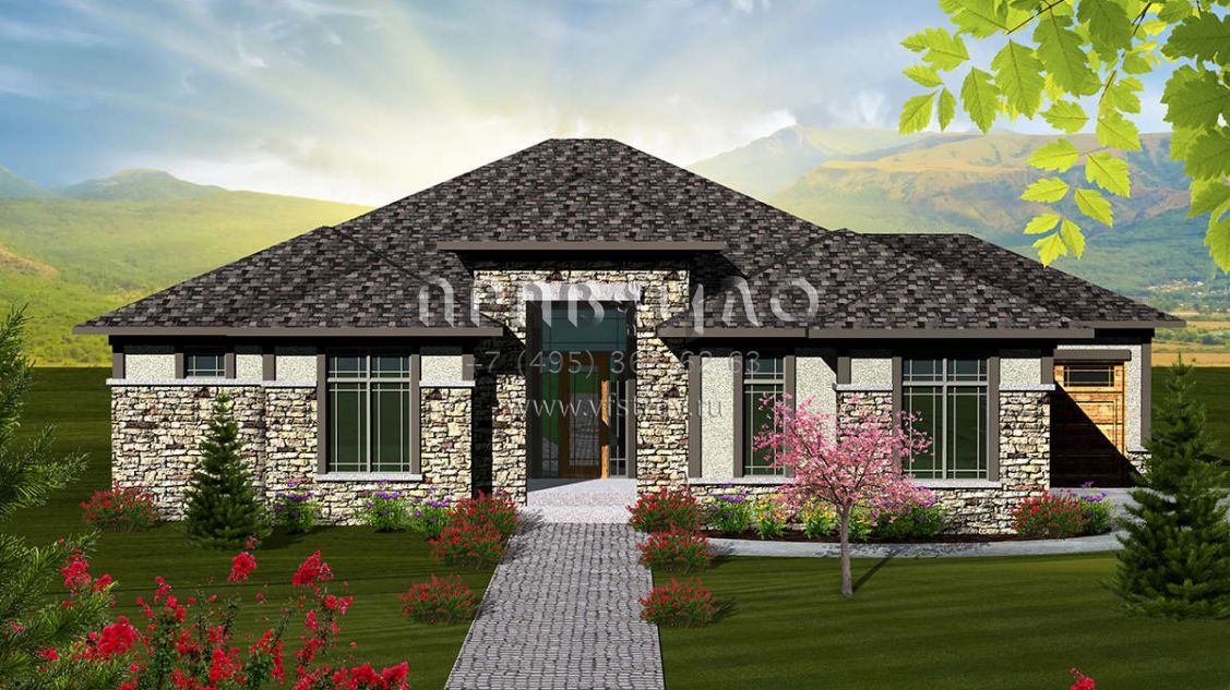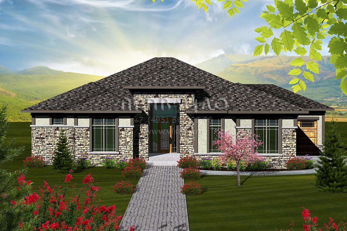 Проект одноэтажного дома с гаражом на три и более машин в стиле Райт S5-193 (1020-00190)
