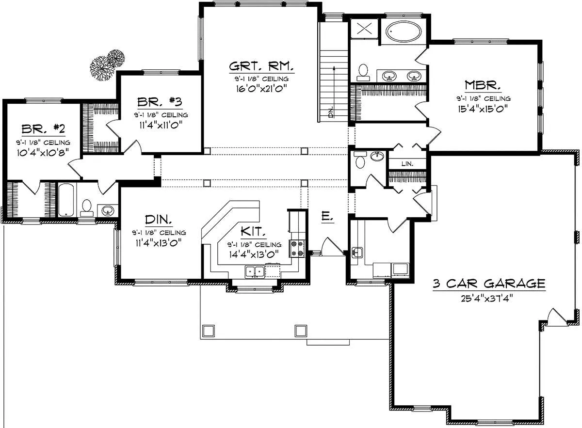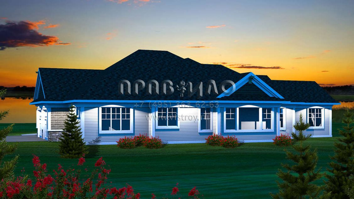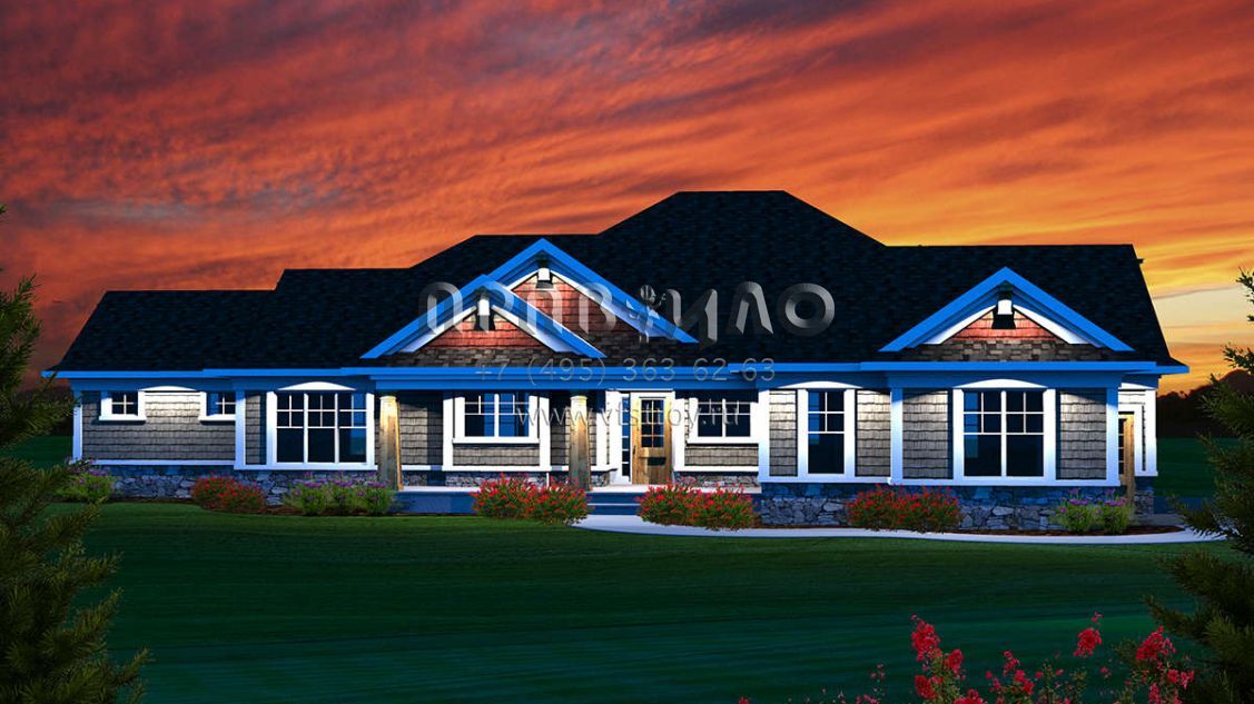 Проект одноэтажного дома с гаражом на три и более машин в стиле Ранчо S5-193 (1020-00207)