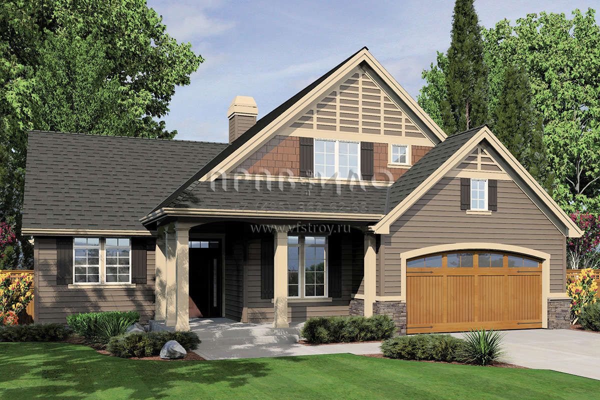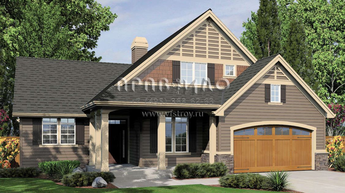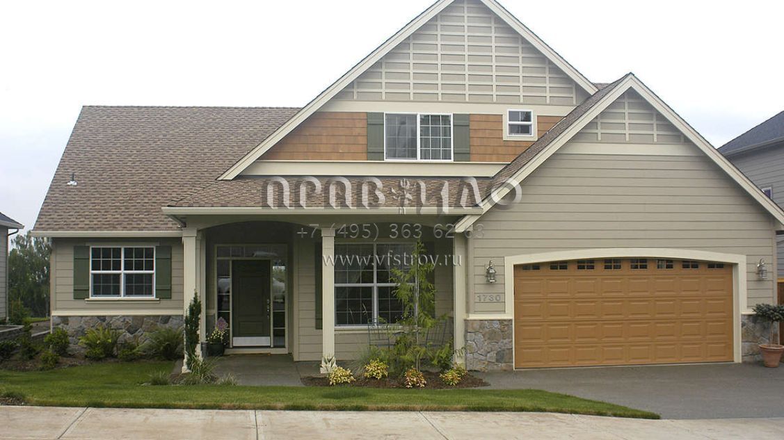 Проект двухэтажного дома с гаражом на три и более машин в стиле Ранчо S5-193 (2559-00348)