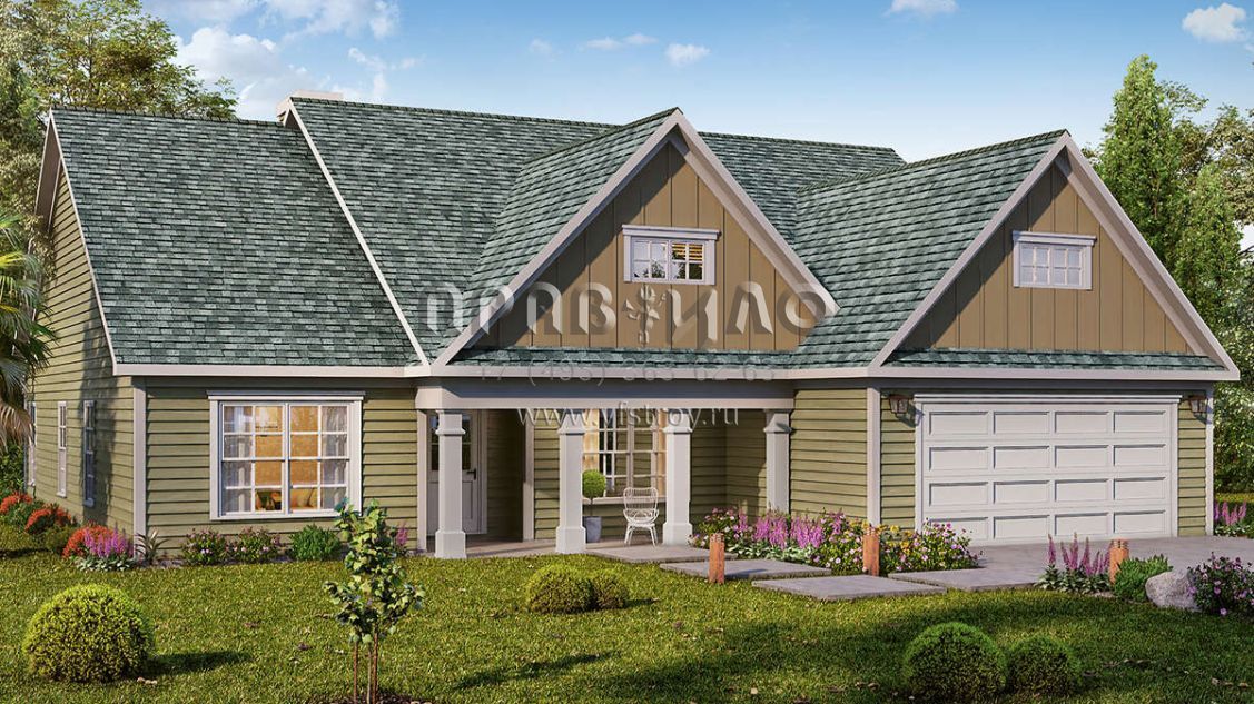 Проект одноэтажного дома с гаражом на две машины в стиле Ранчо S5-193 (6082-00162)