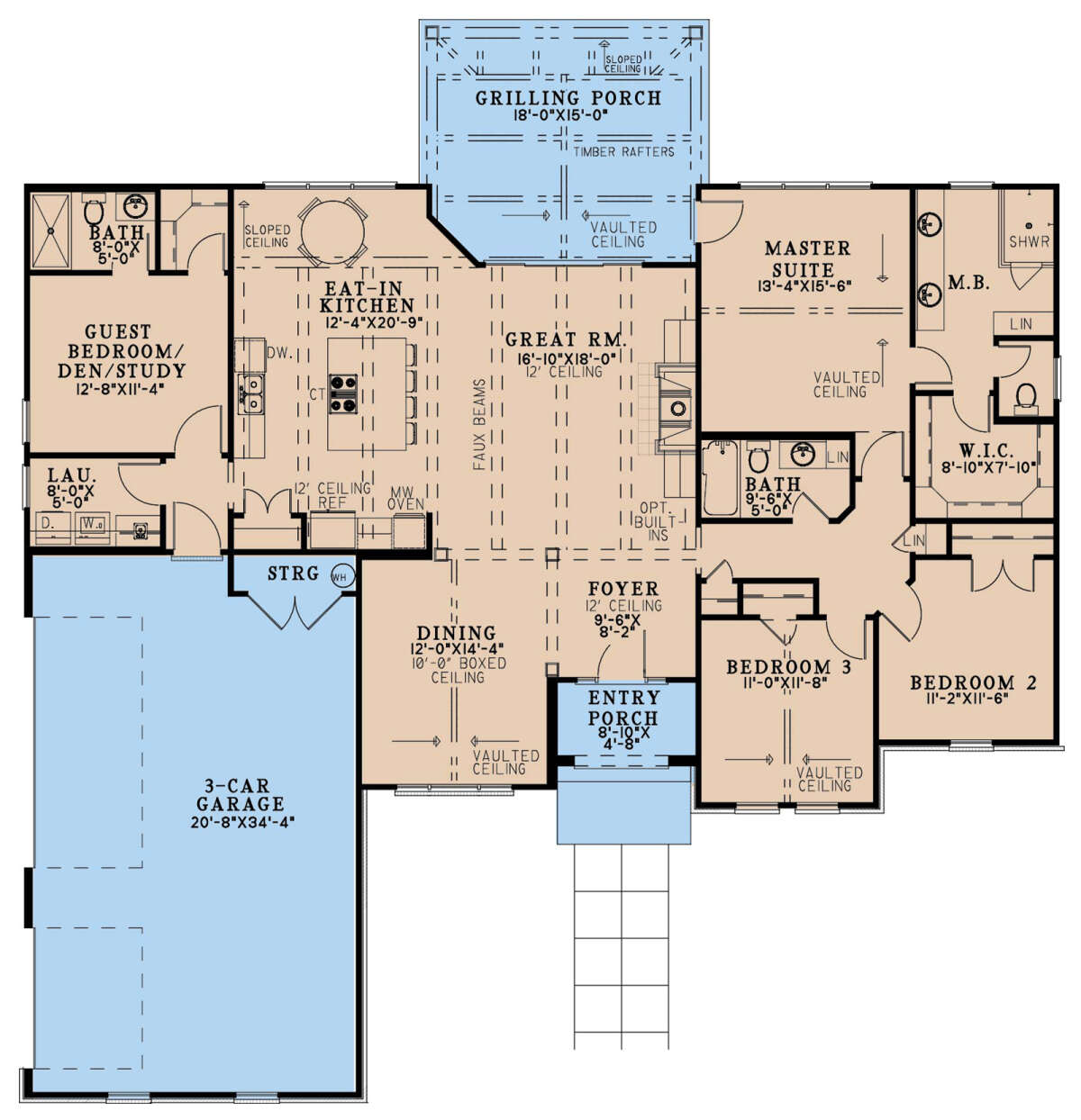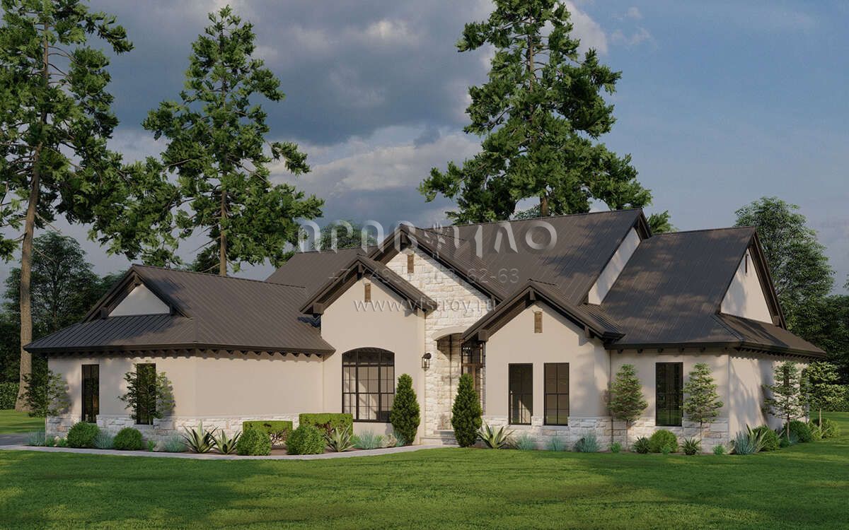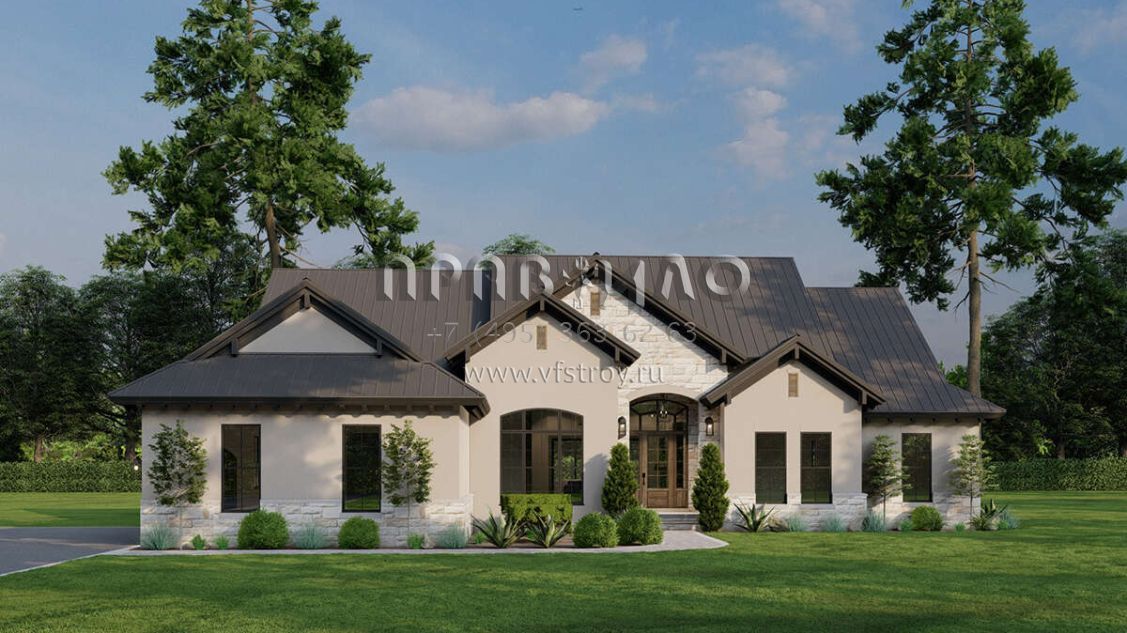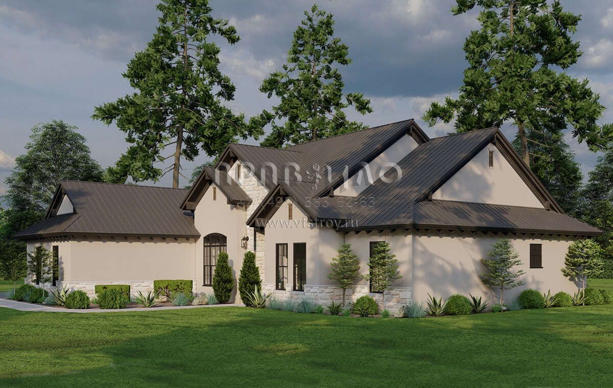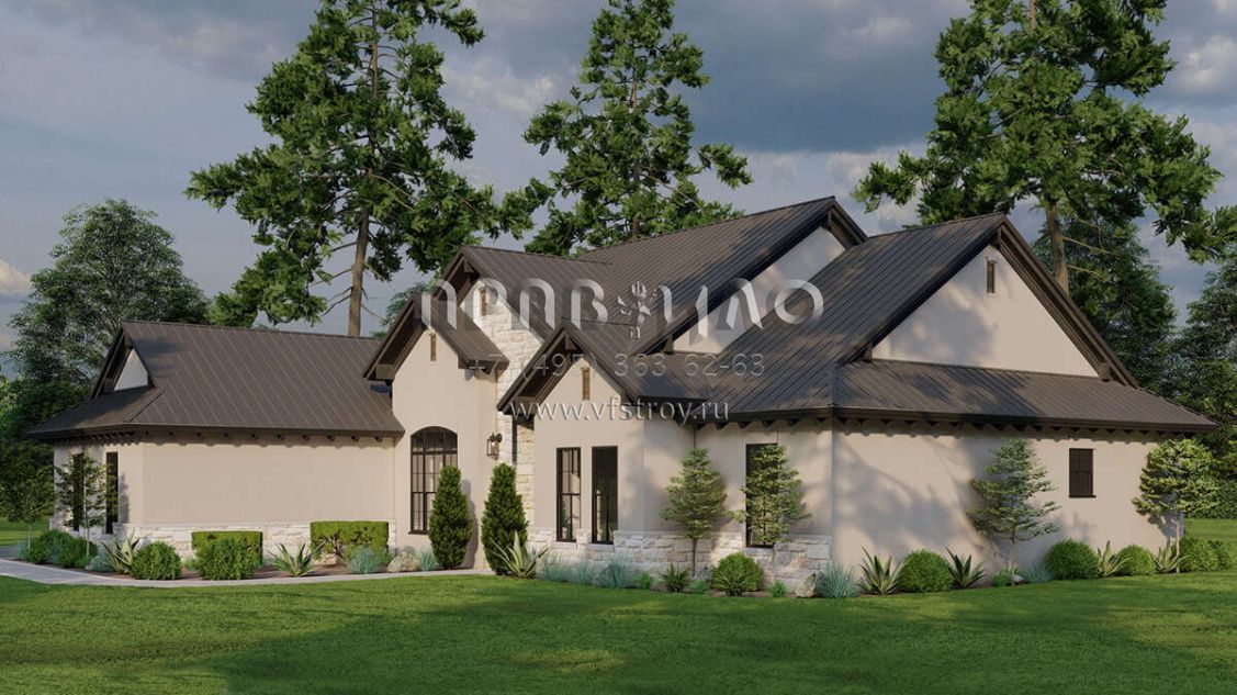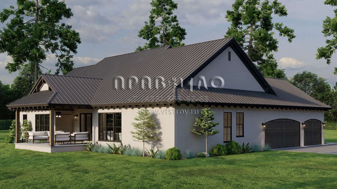 Проект одноэтажного дома с гаражом на три и более машин в английском стиле S5-193 (8318-00356)