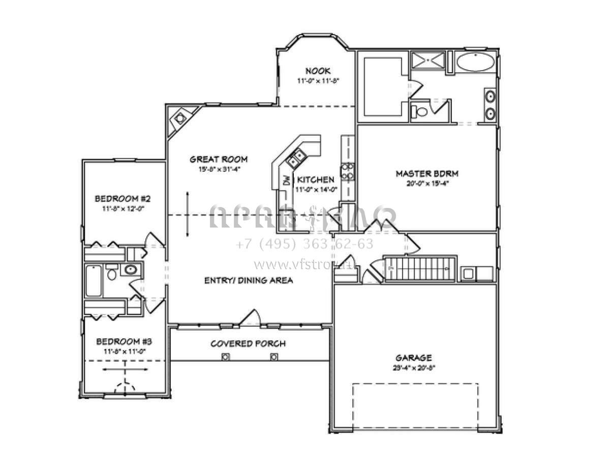 Проект одноэтажного дома с гаражом на две машины в стиле Ранчо S5-193 (849-00102)