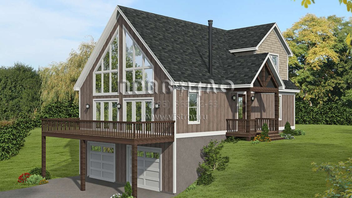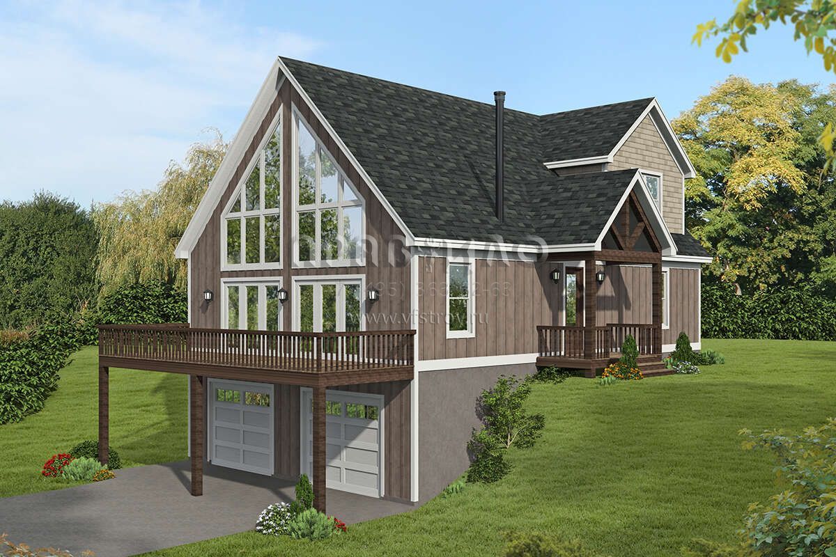 Проект двухэтажного дома с гаражом на три и более машин в стиле Шале S5-193 (940-00508)
