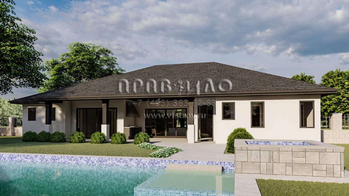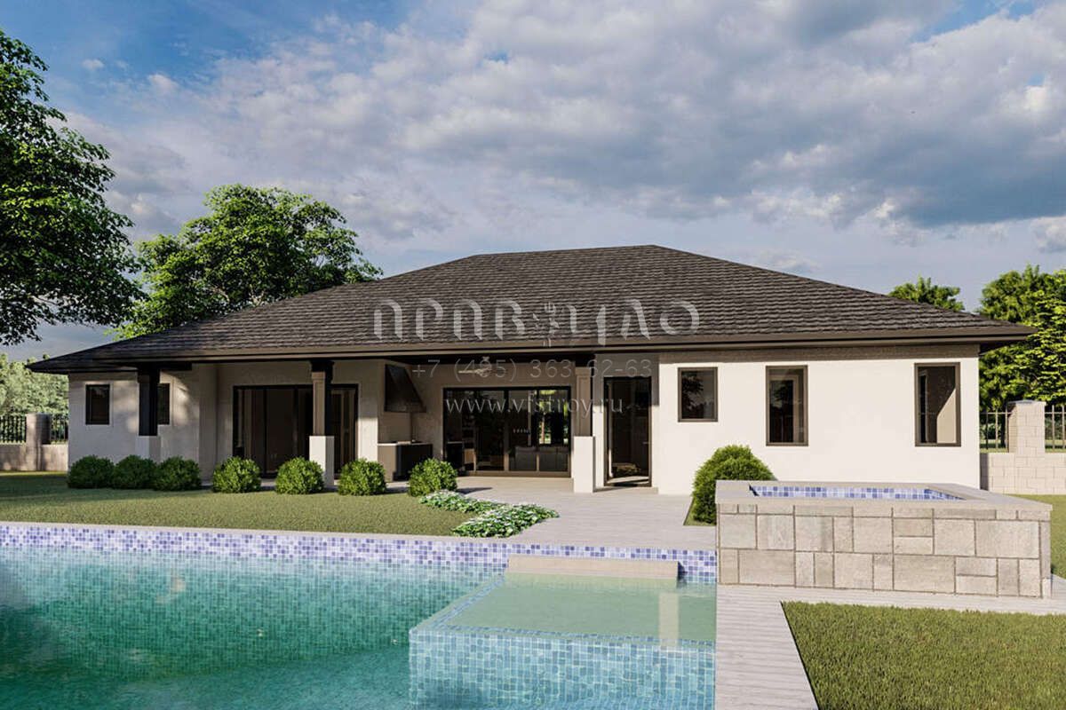 Большая площадь участка позволяет выбрать одноэтажный проект дома, особенно если в семье есть пожилые люди, инвалиды или маленькие дети.