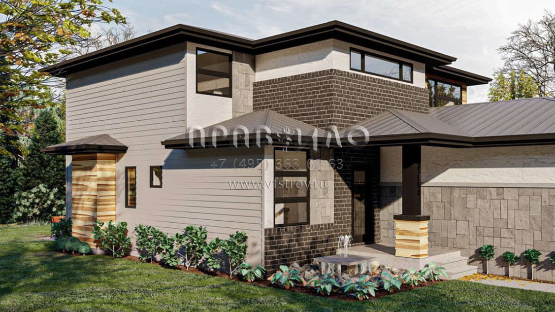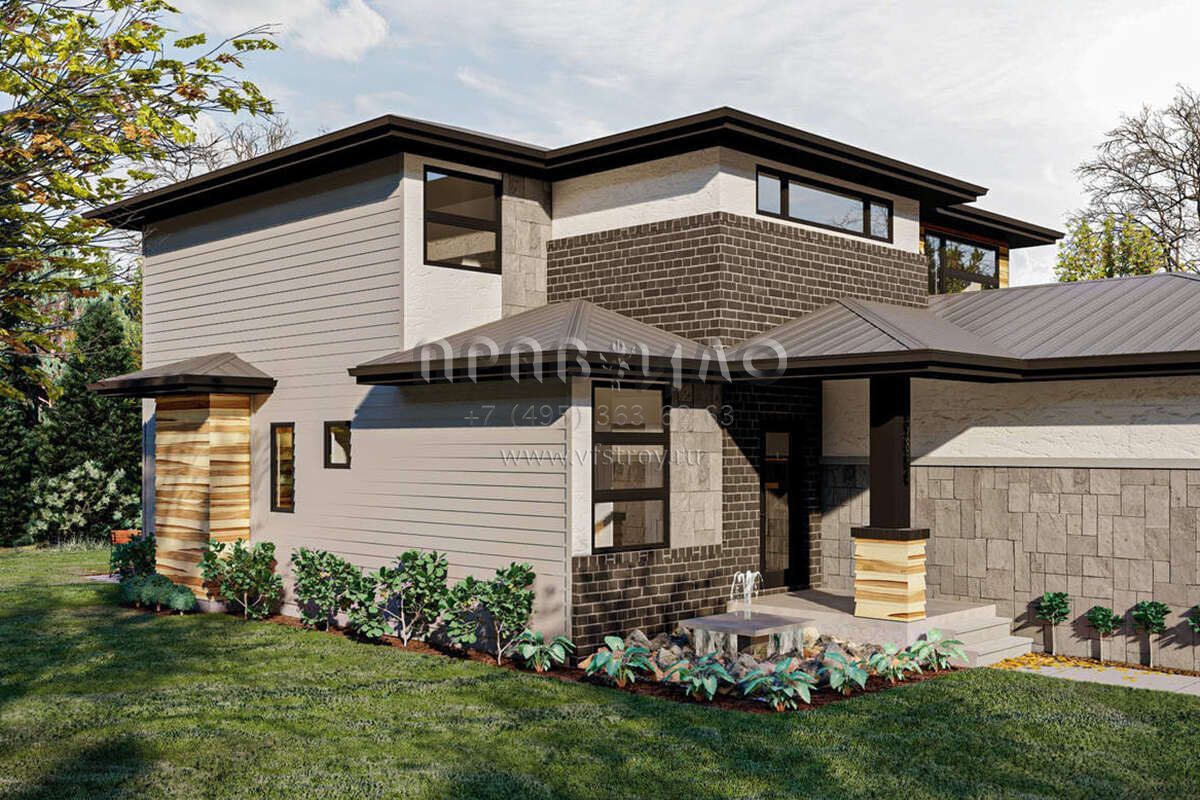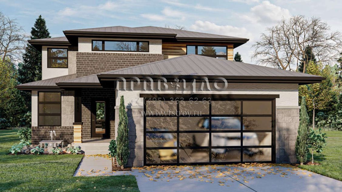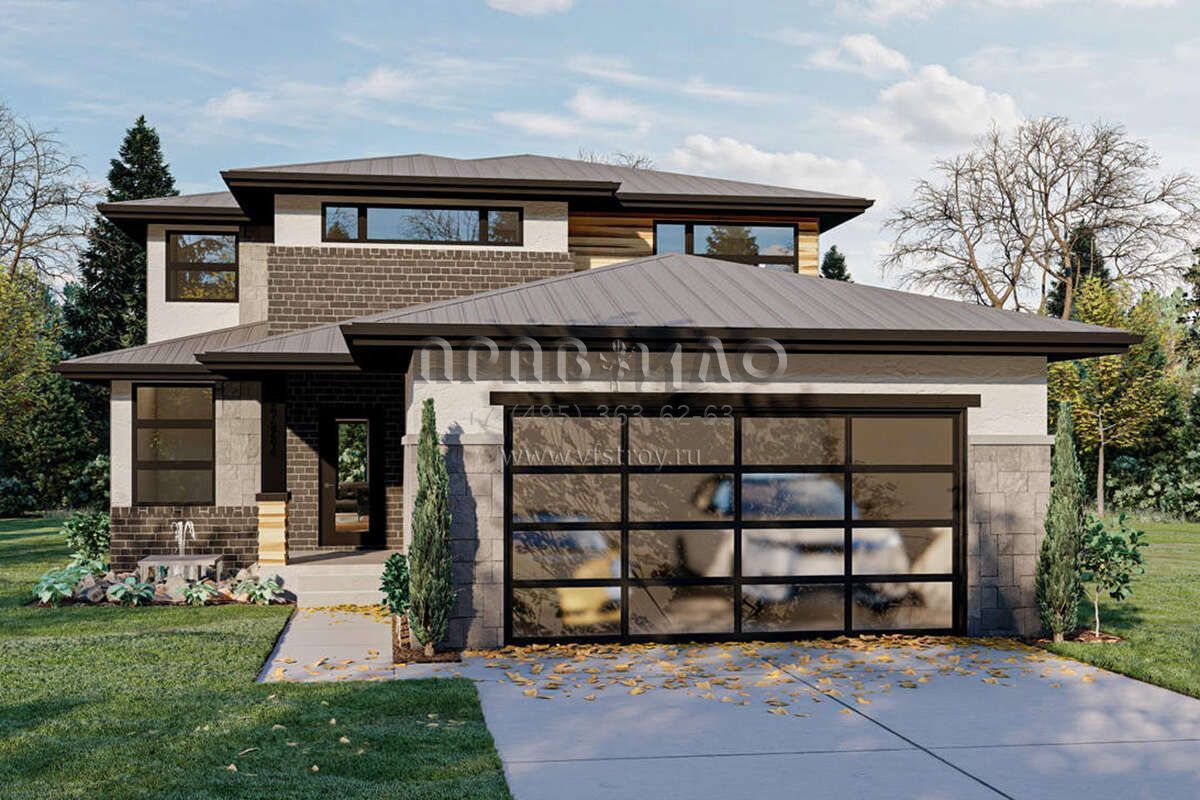 Проект двухэтажного дома с гаражом на две машины в современном стиле S5-193 (963-00479)