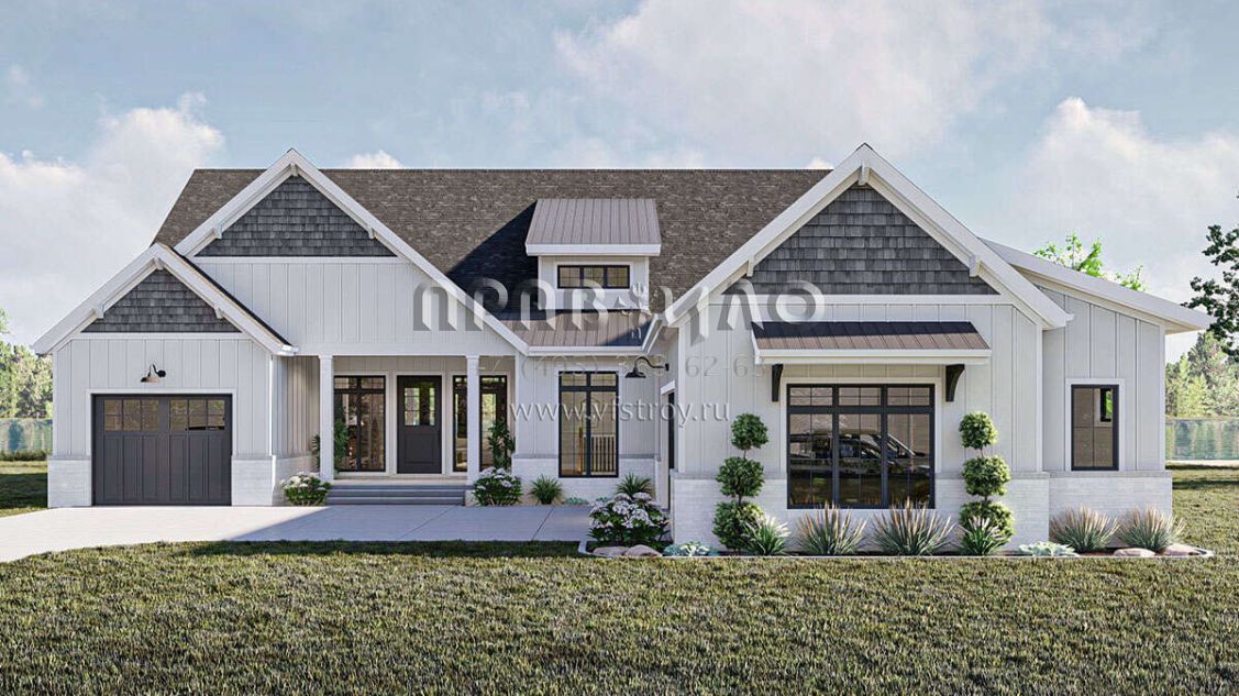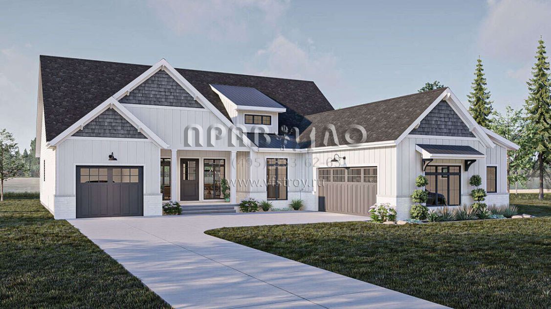 Проект одноэтажного дома с гаражом на три и более машин в современном стиле S5-193 (963-00794)
