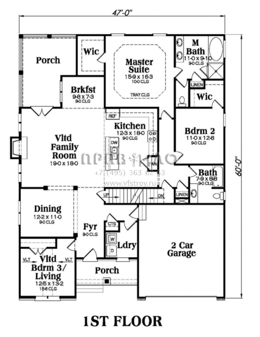 Проект двухэтажного дома с гаражом на две машины в американском стиле S5-194 (009-00117)