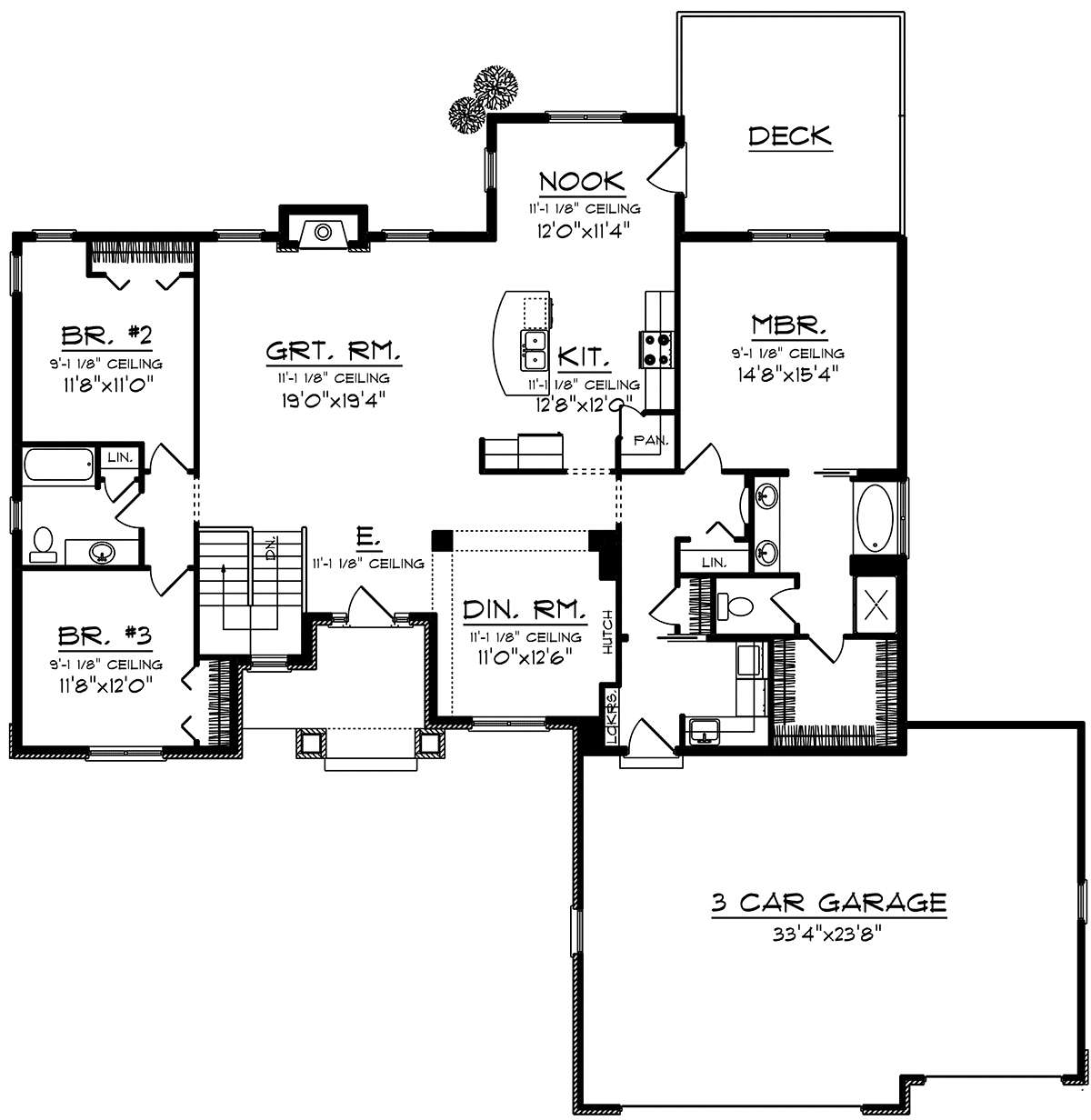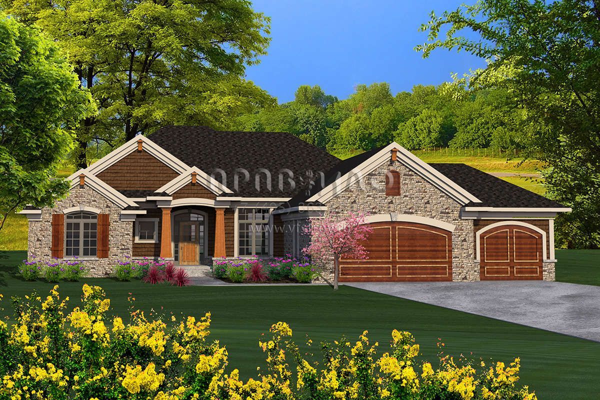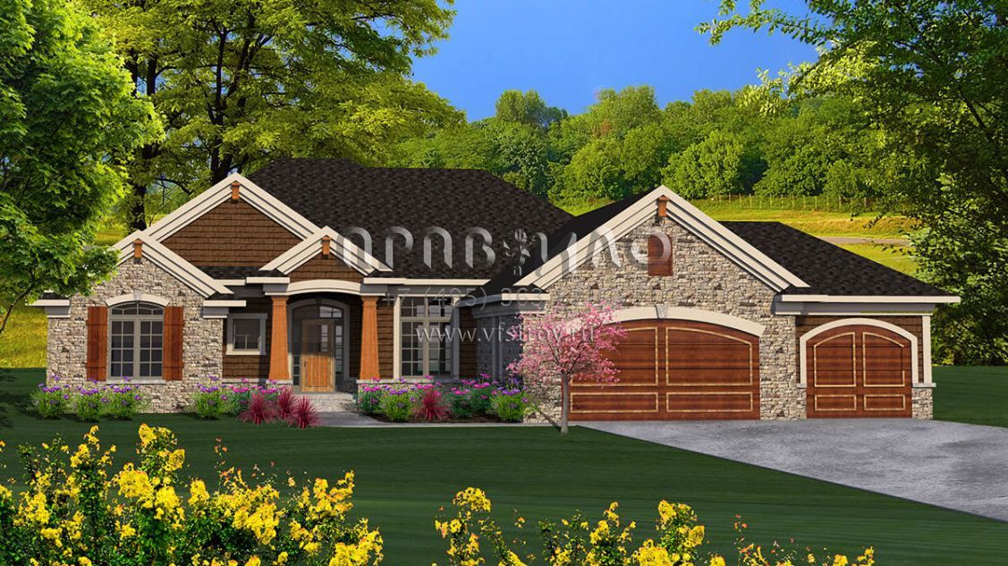 Проект одноэтажного дома с гаражом на три и более машин в американском стиле S5-194 (1020-00171)