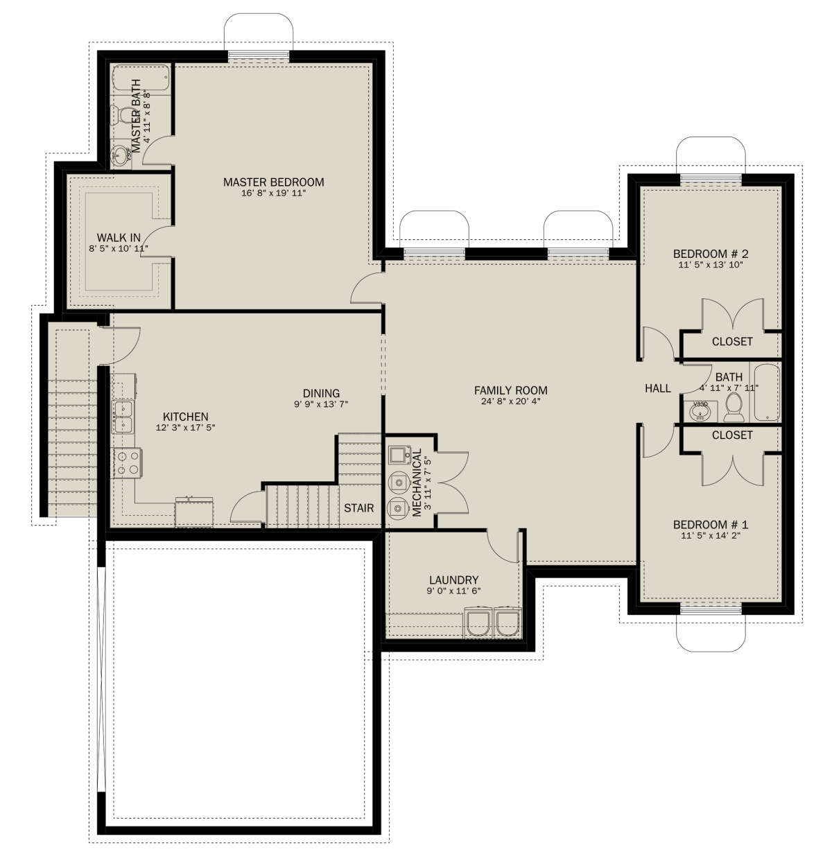 Проект одноэтажного дома с гаражом на две машины в стиле Ранчо S5-194 (2802-00217)