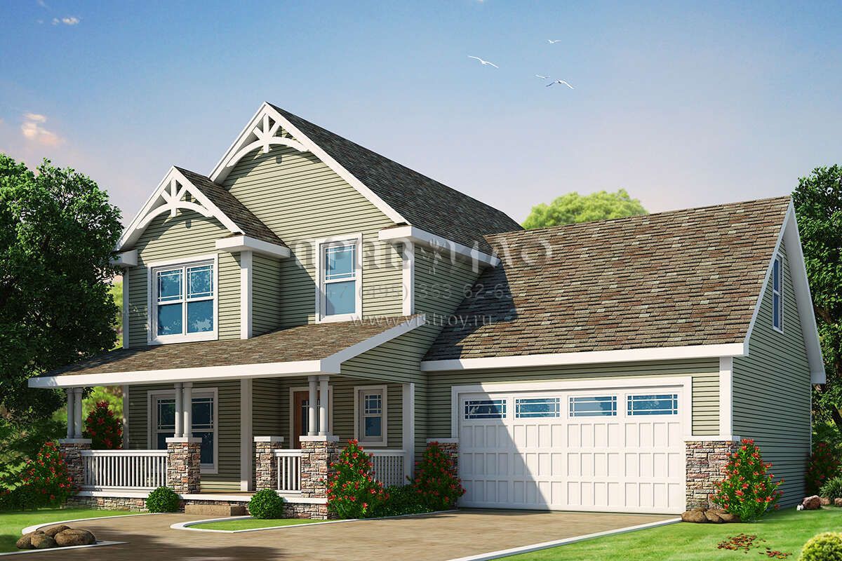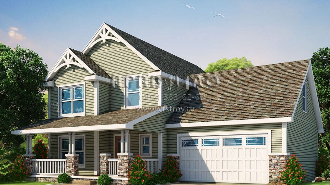 Проект двухэтажного дома с гаражом на две машины в американском стиле S5-194 (402-01635)