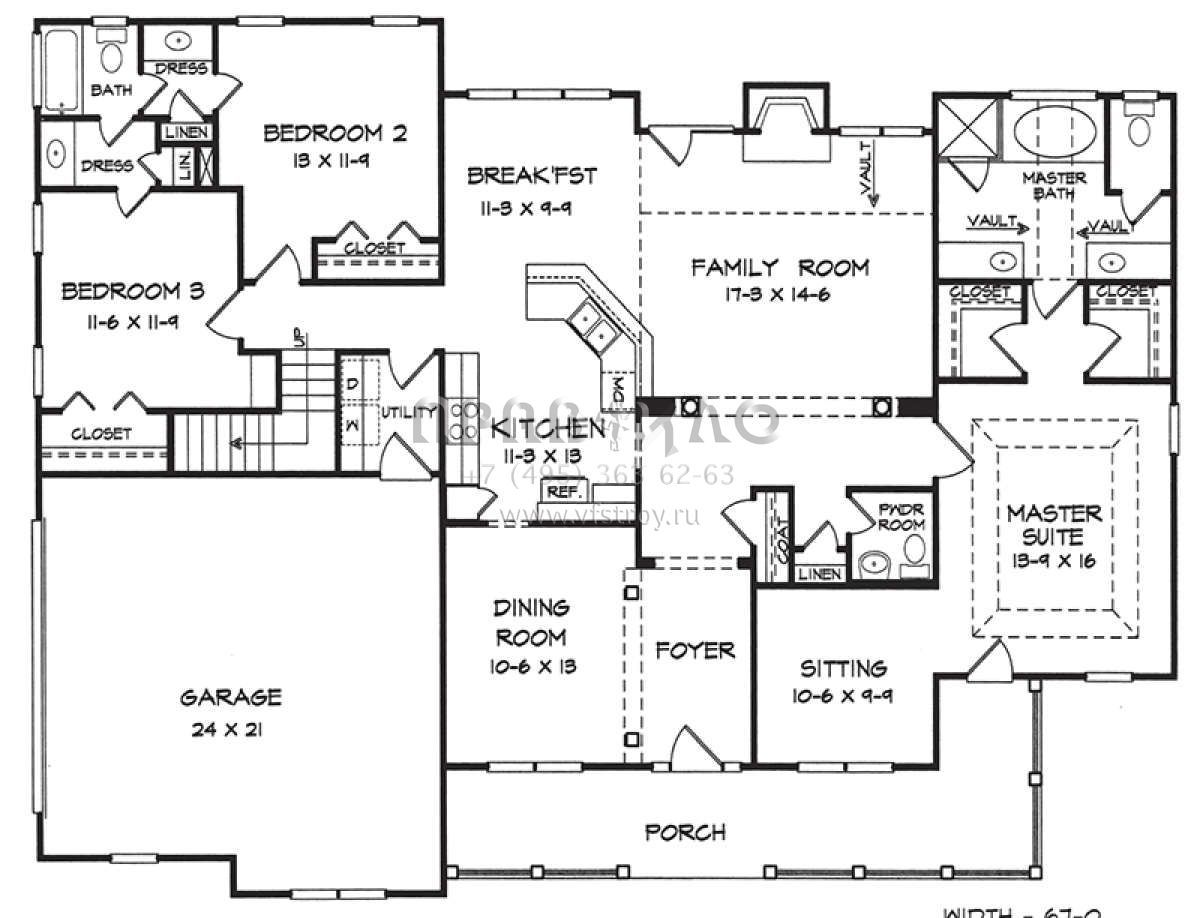 Проект одноэтажного дома с гаражом на две машины в стиле Ранчо S5-194 (6082-00096)