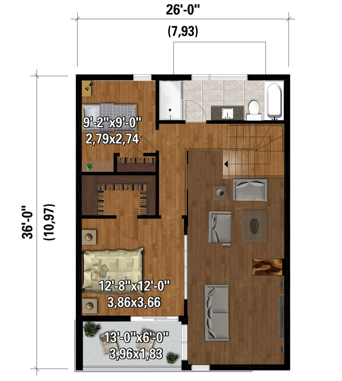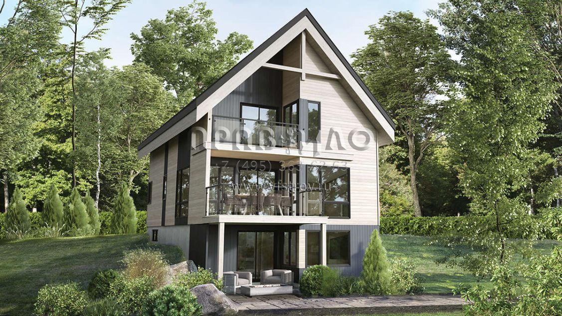 Проект двухэтажного дома без гаража в стиле Дом-шалаш S5-194 (6146-00548)