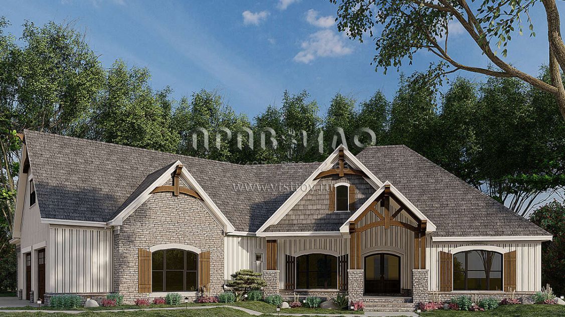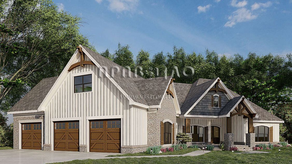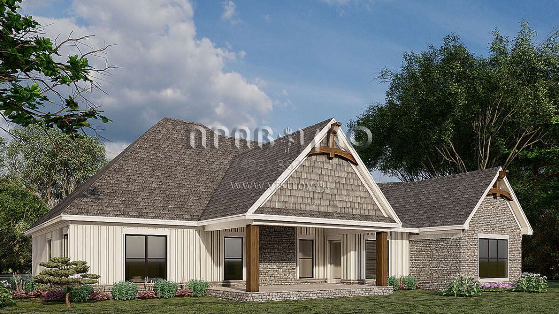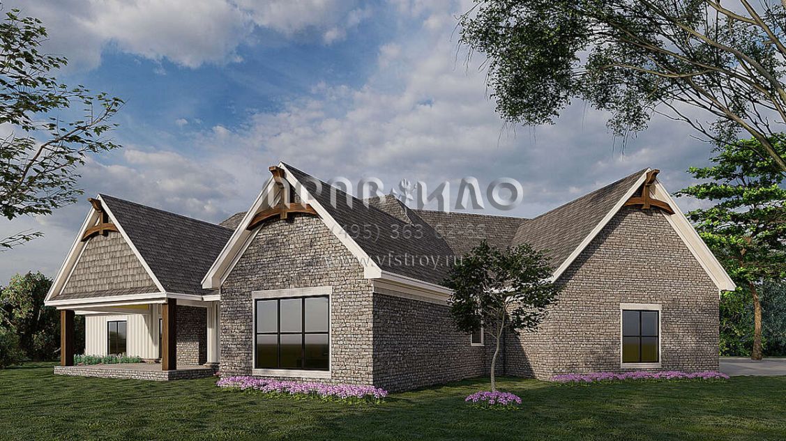 Проект одноэтажного дома с гаражом на три и более машин в американском стиле S5-194 (8318-00187)