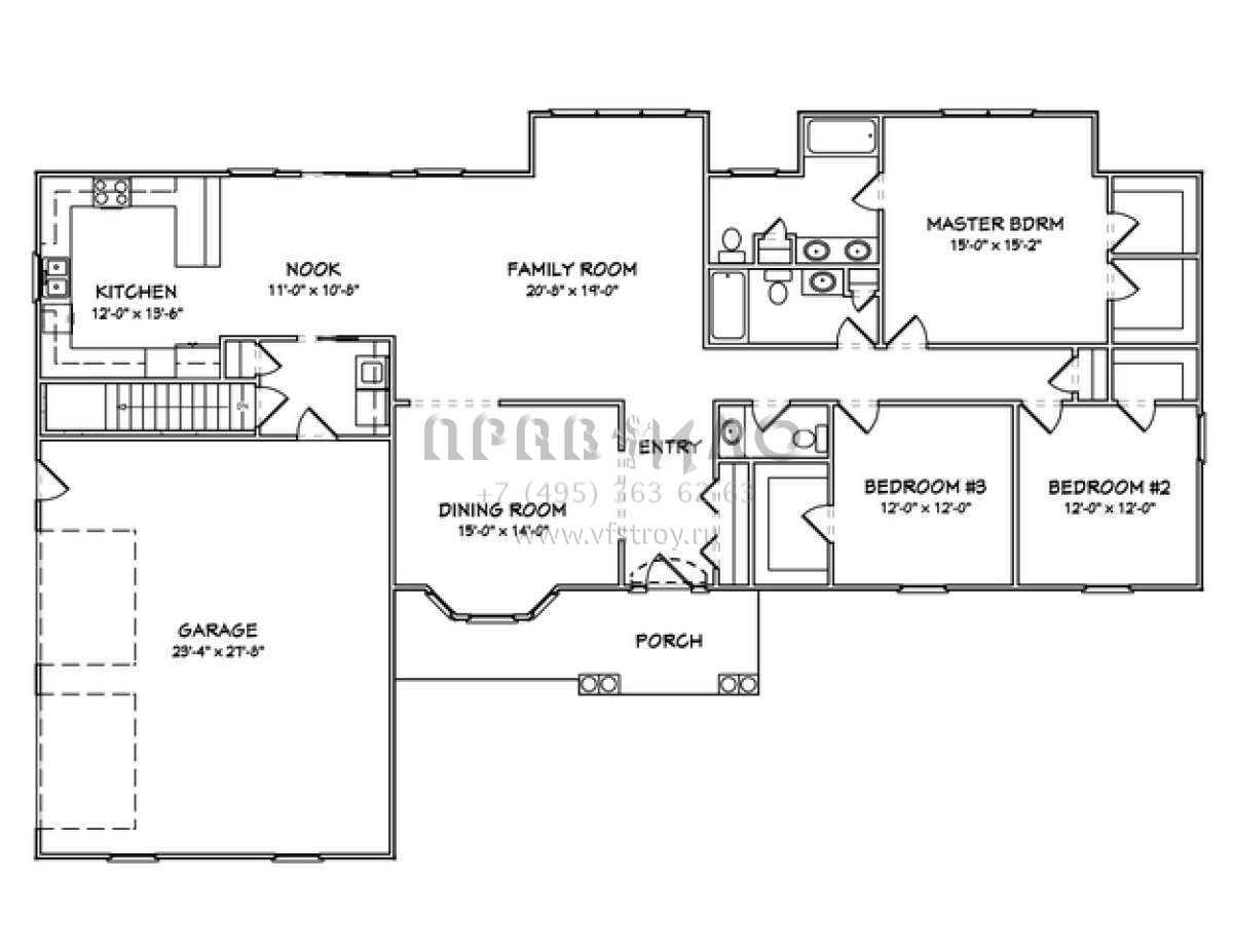 S5-194 (849-00090) Это иностранный проект, для которого требуется адаптация под нормы, действующие в Российской Федерации. Вы видите проект дома в стиле Ранчо. В этом доме сочетаются черты сельской постройки и аскетичность лофта. Внутри жильцы смогут проводить время с максимальным комфортом. Обратим внимание, что сейчас на планировках все размеры представлены в футах. Для перевода в метры вам необходимо значение в футах умножить на 0,3048.