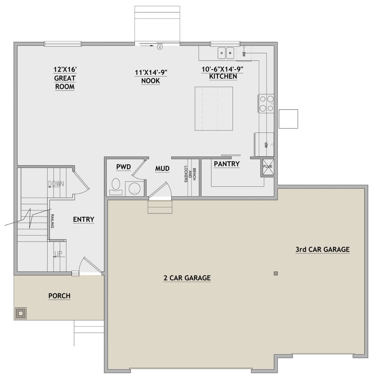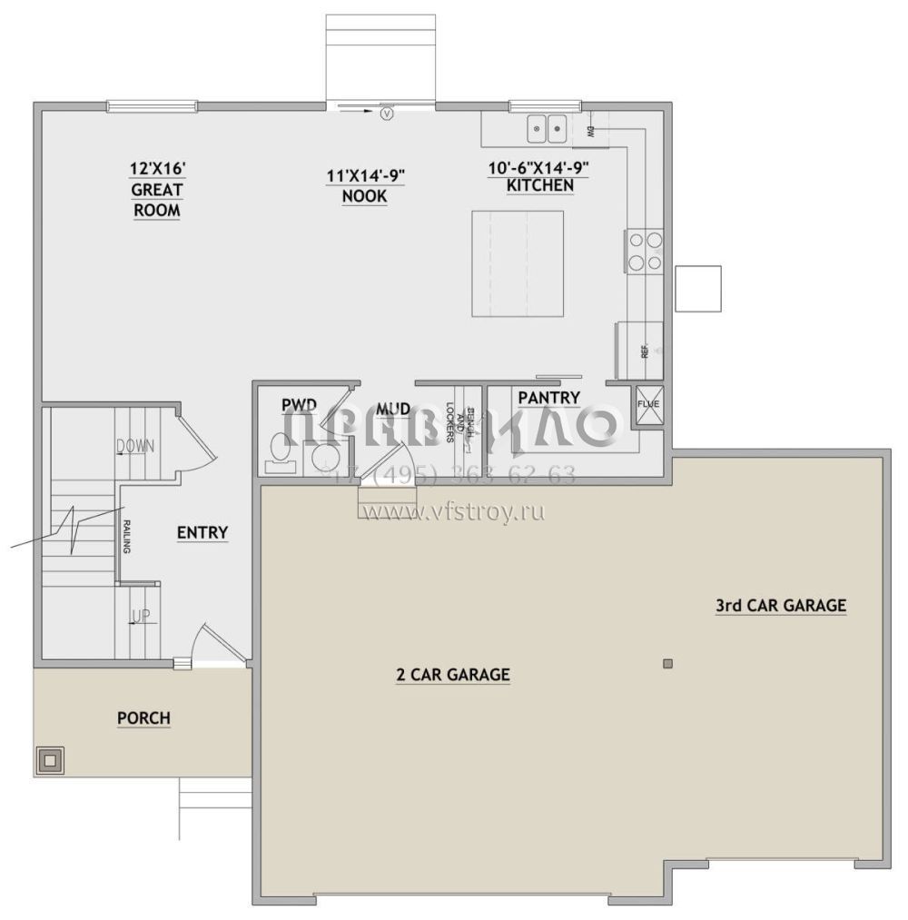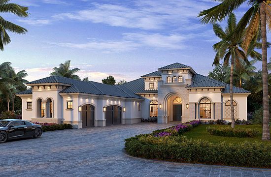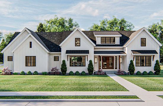 Проект двухэтажного дома с гаражом на три и более машин в стиле Ранчо S5-194 (8768-00120)