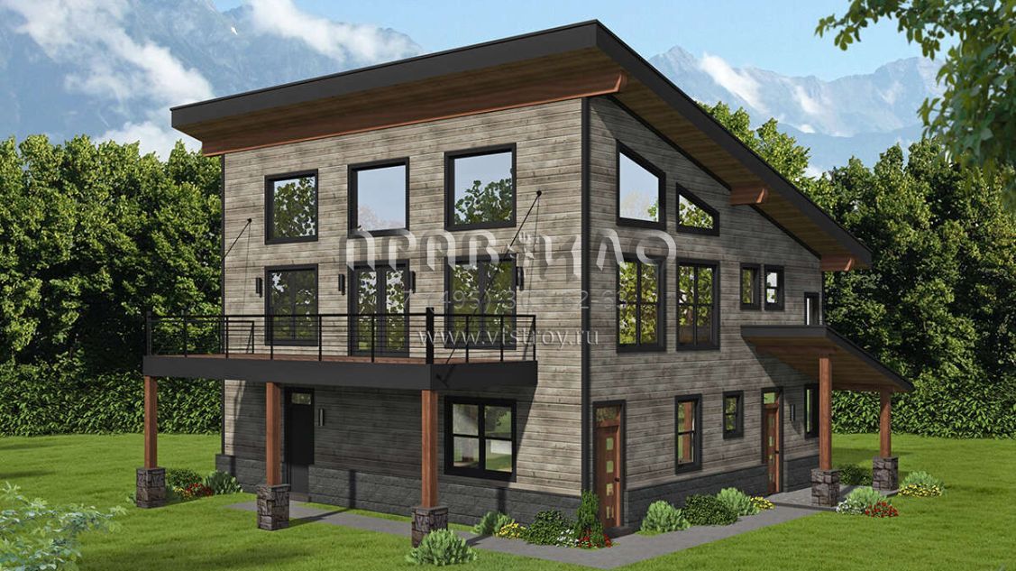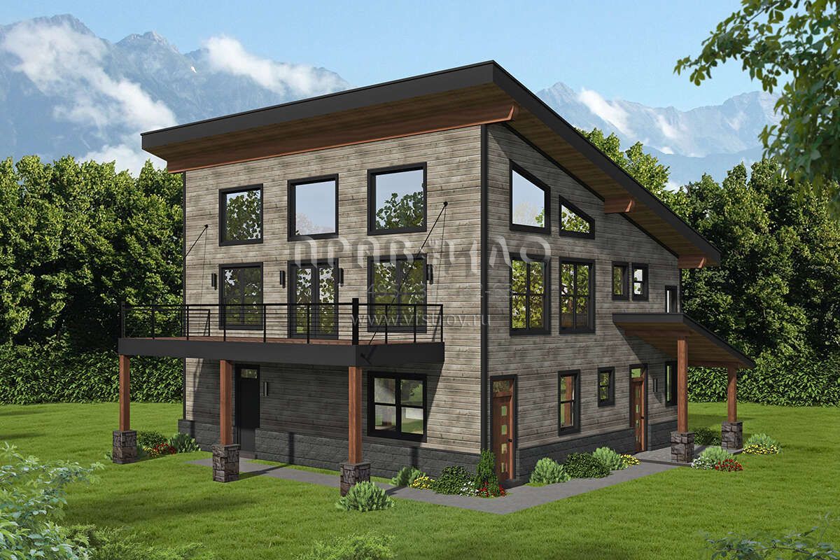 Проект трехэтажного дома с гаражом на три и более машин в современном стиле S5-194 (940-00507)