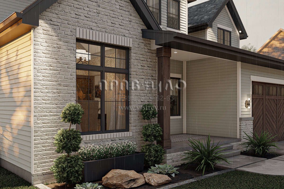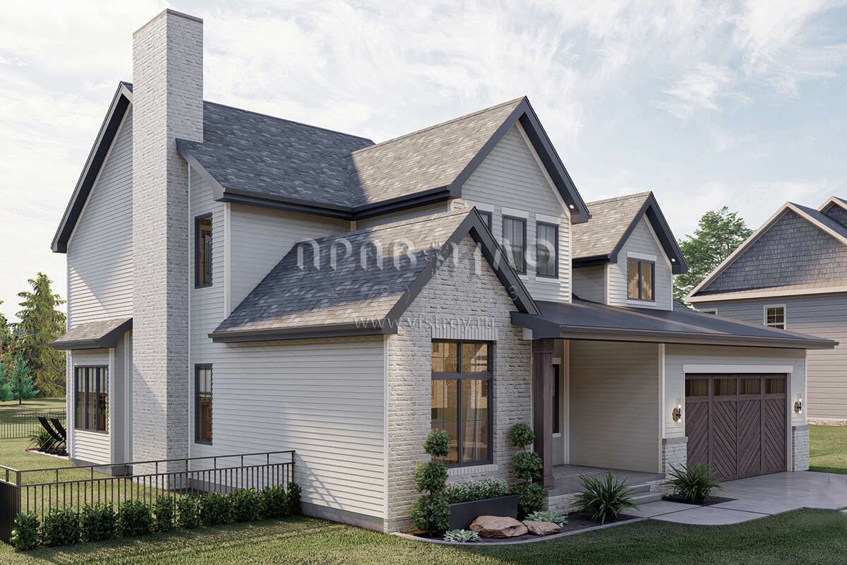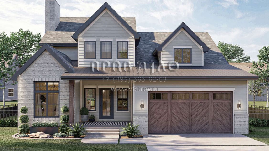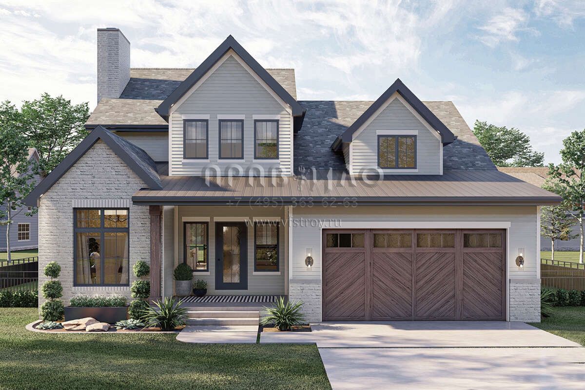 Проект двухэтажного дома с гаражом на две машины в стиле Ранчо S5-194 (963-00702)