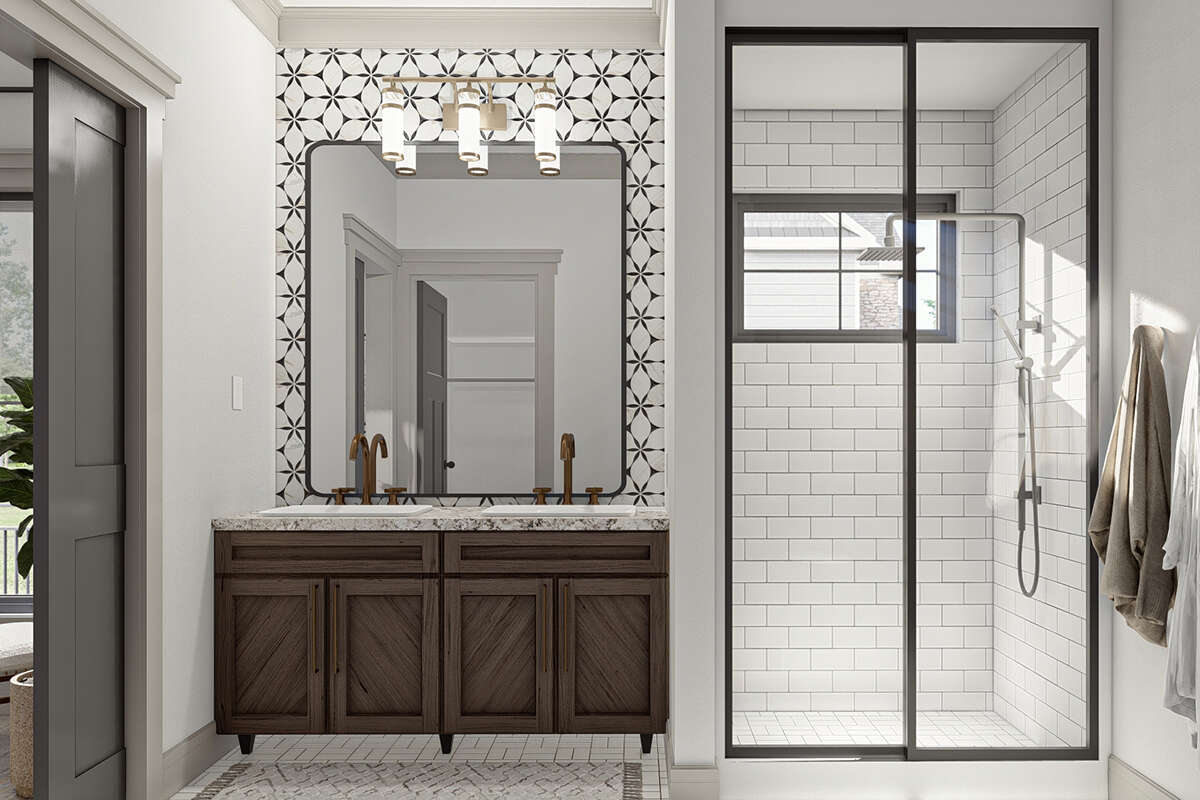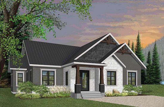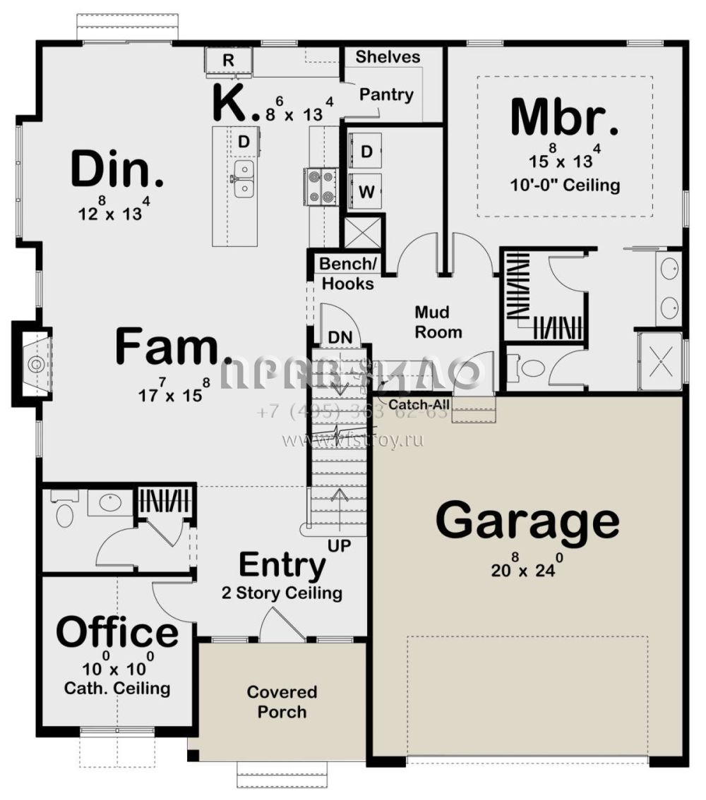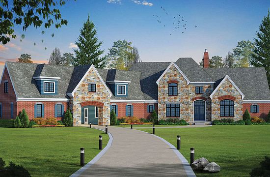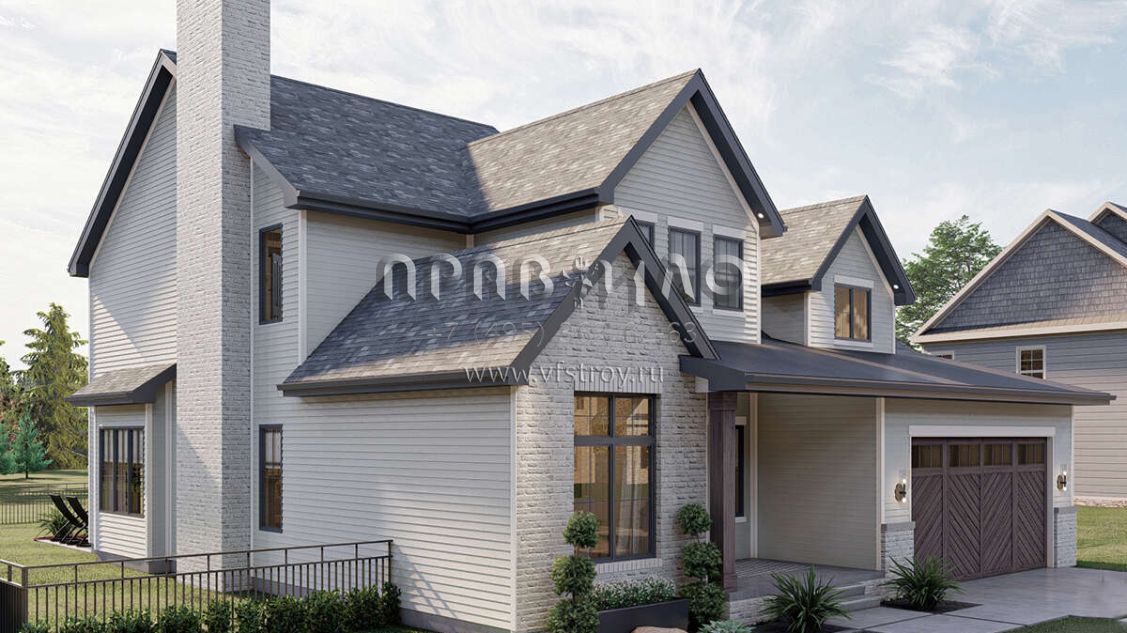Проект двухэтажного дома с гаражом на две машины в стиле Ранчо S5-194 (963-00702)