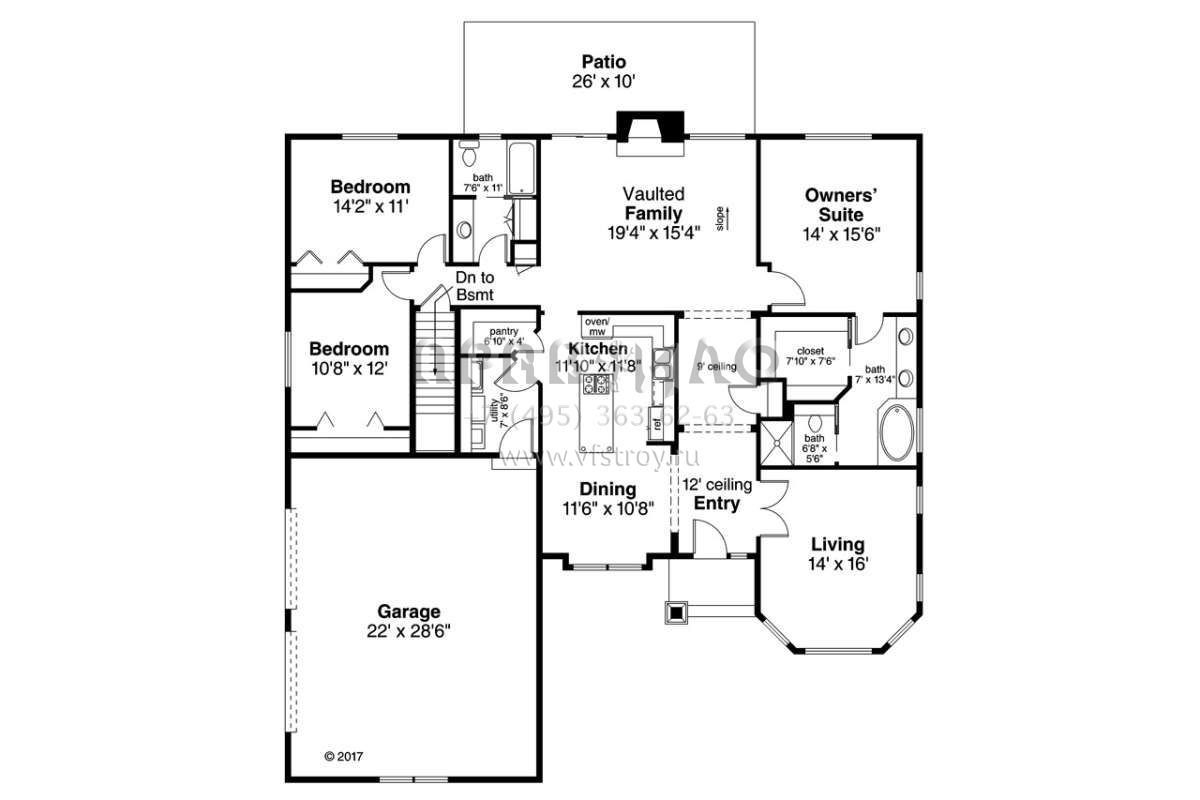 Проект одноэтажного дома с гаражом на две машины в стиле Ранчо S5-195 (035-00790)
