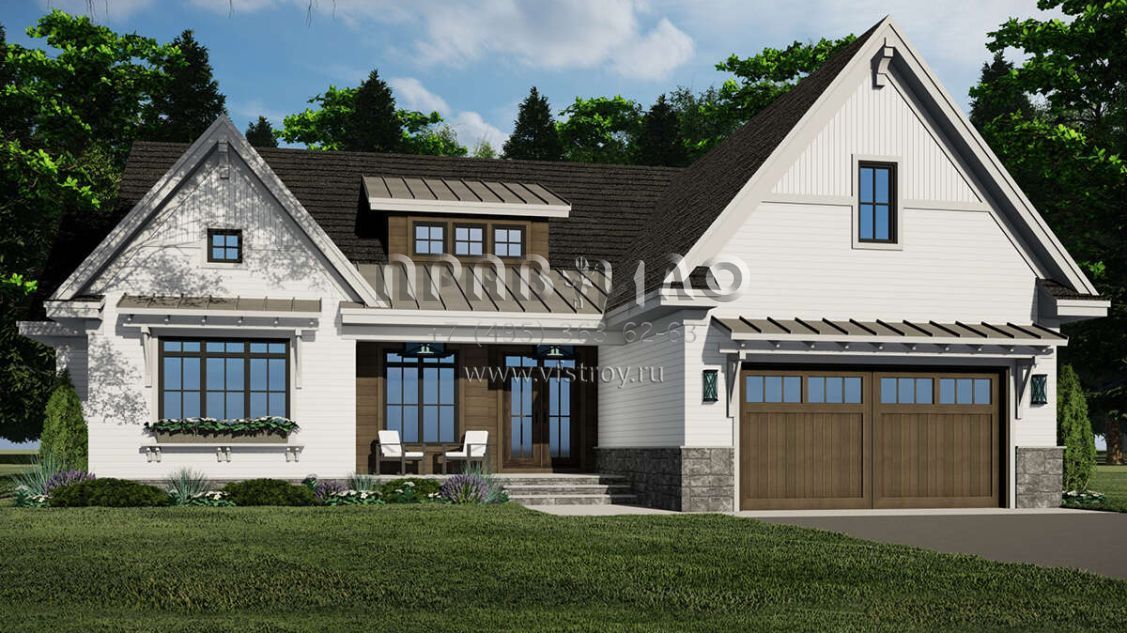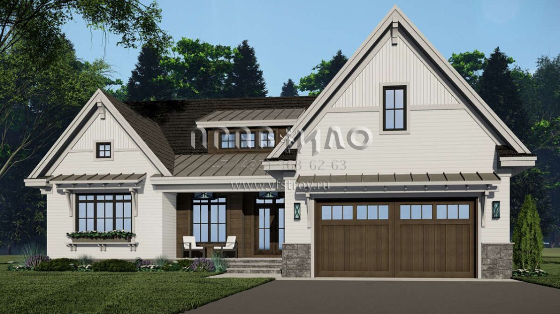 Проект одноэтажного дома с гаражом на две машины в американском стиле S5-195 (098-00414)