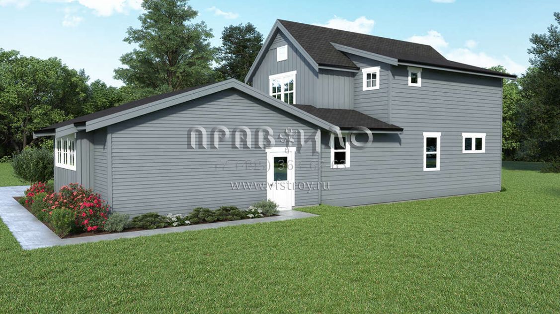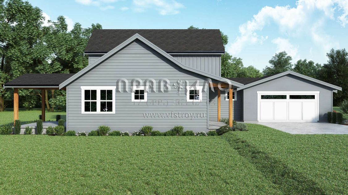 Проект двухэтажного дома с гаражом на две машины в стиле Ранчо S5-195 (2464-00074)