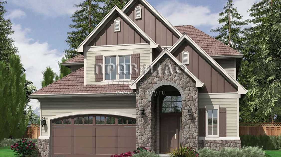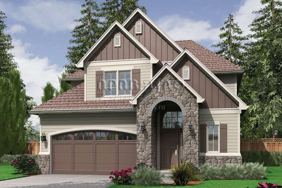 Проект двухэтажного дома с гаражом на две машины в английском стиле S5-195 (2559-00398)