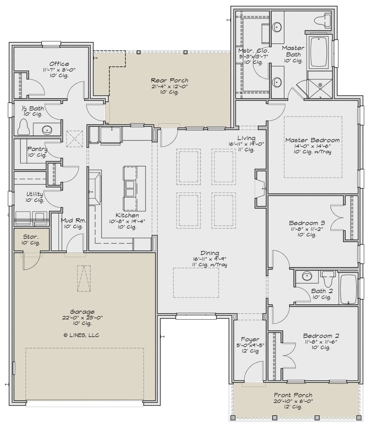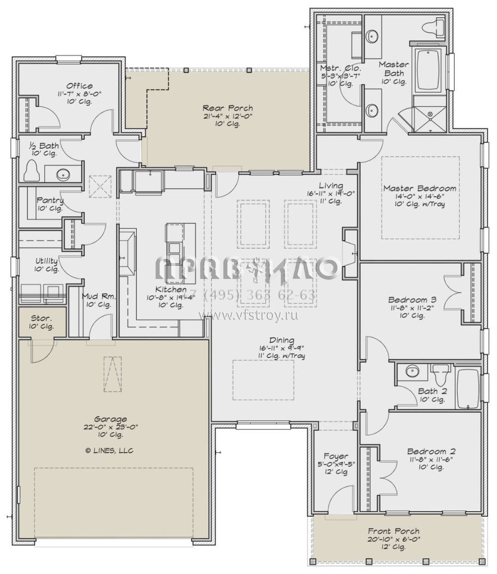 Проект одноэтажного дома с гаражом на две машины в стиле Ранчо S5-195 (2880-00003)