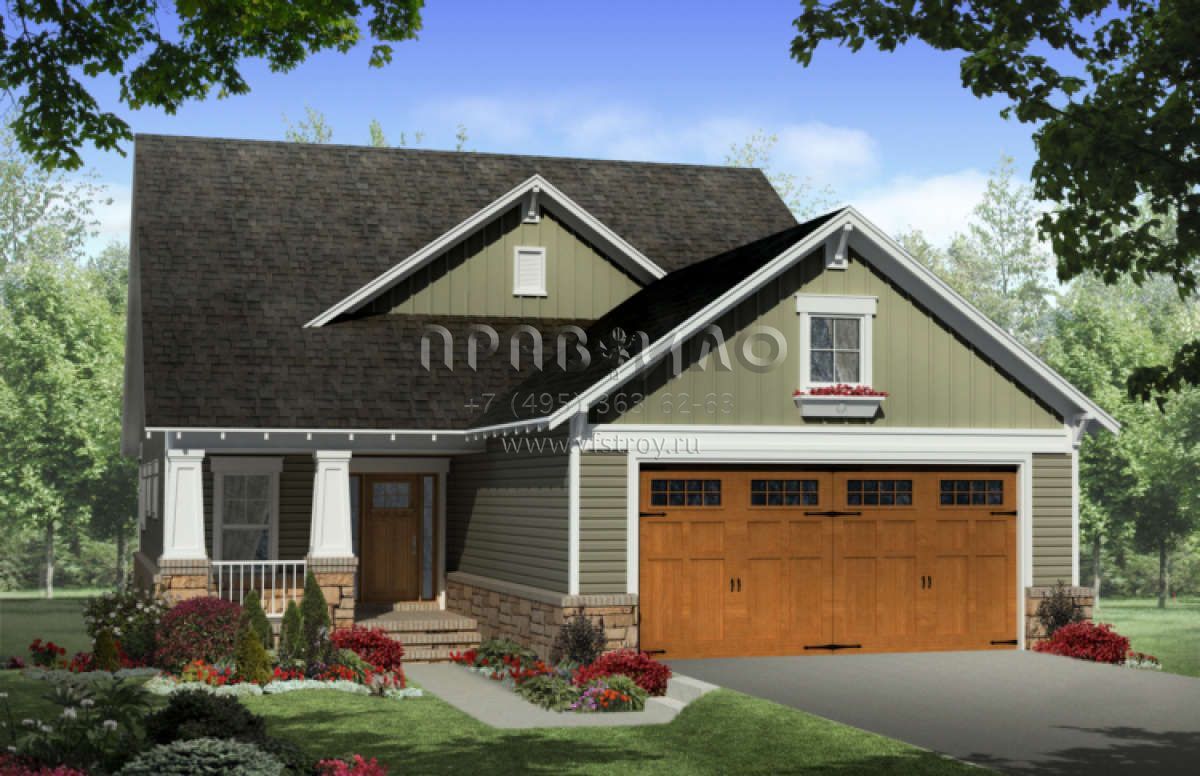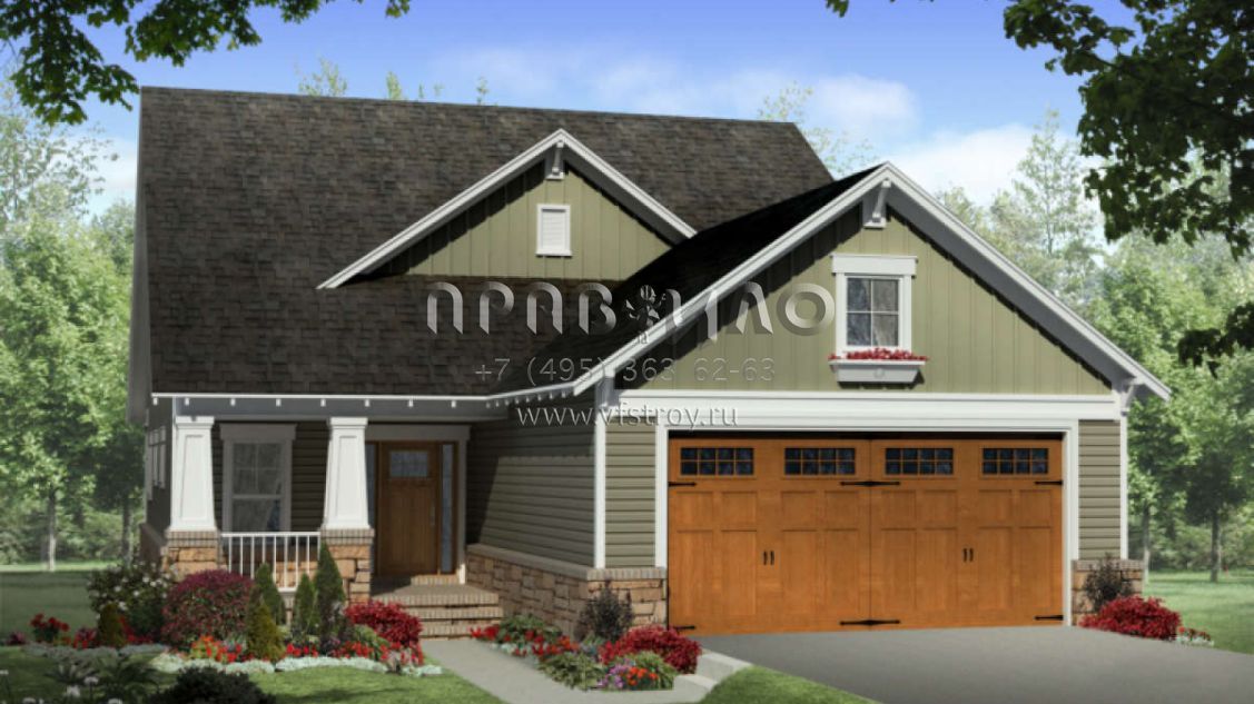 Проект двухэтажного дома с гаражом на две машины в американском стиле S5-195 (348-00125)