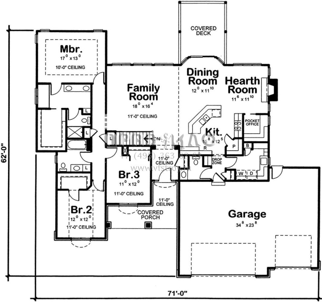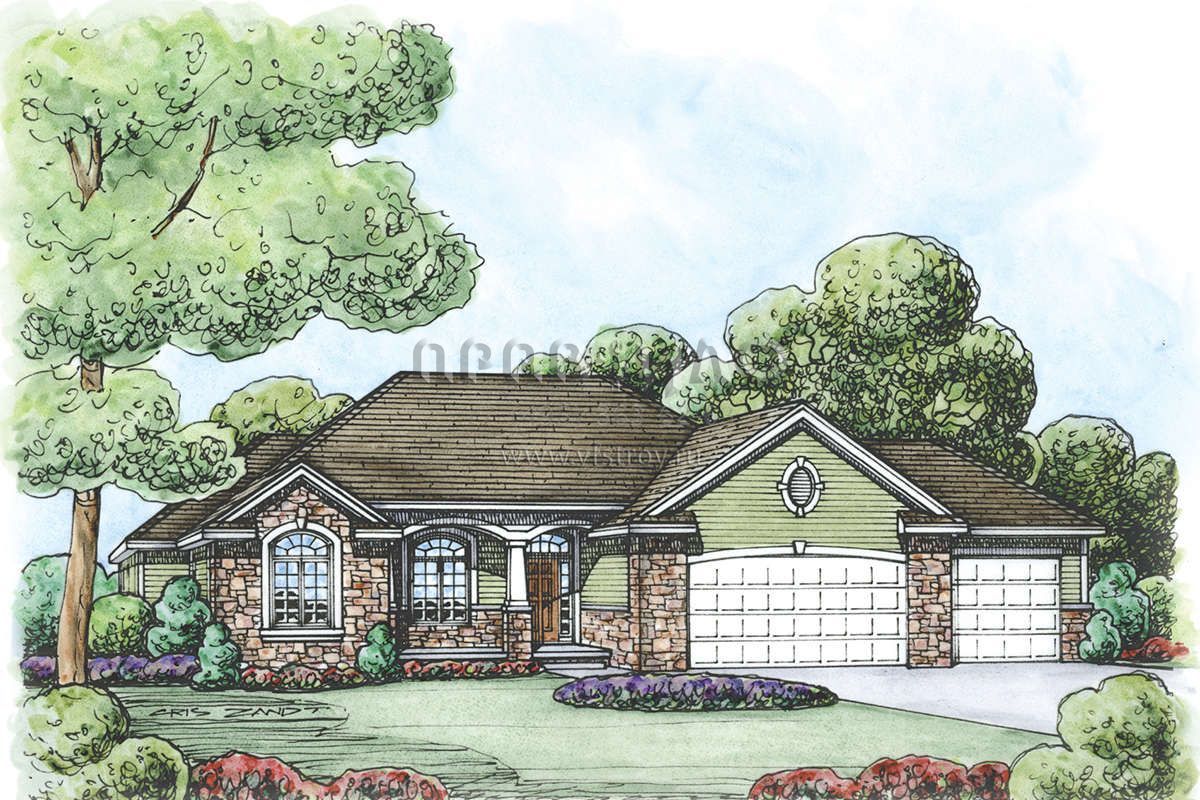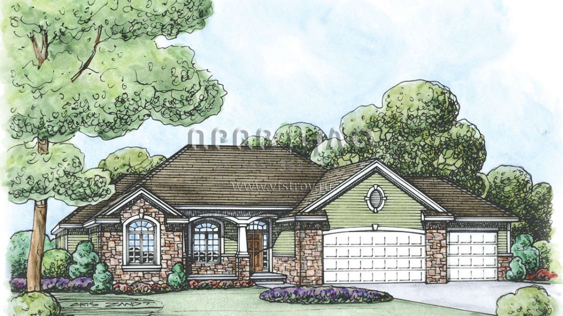 Проект одноэтажного дома с гаражом на три и более машин в стиле Ранчо S5-195 (402-01530)