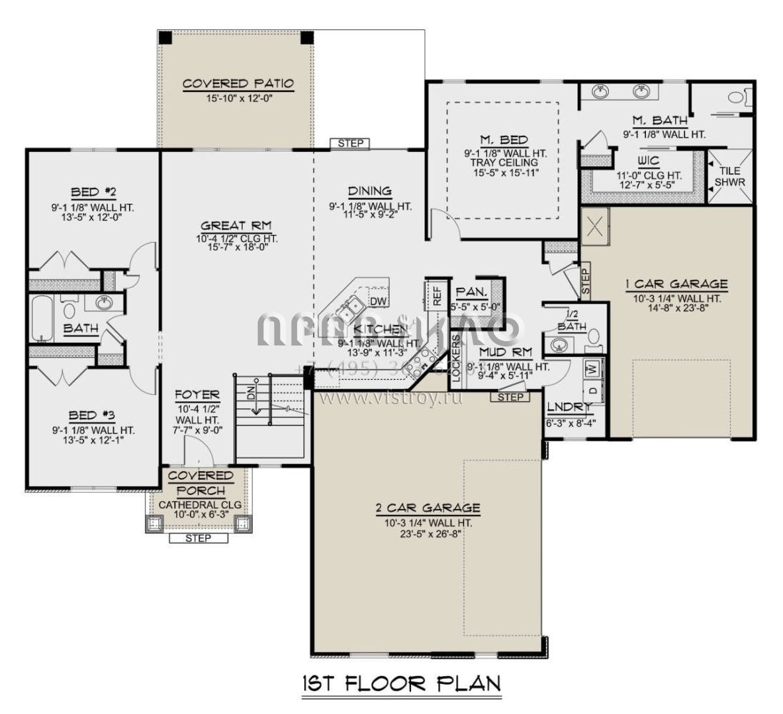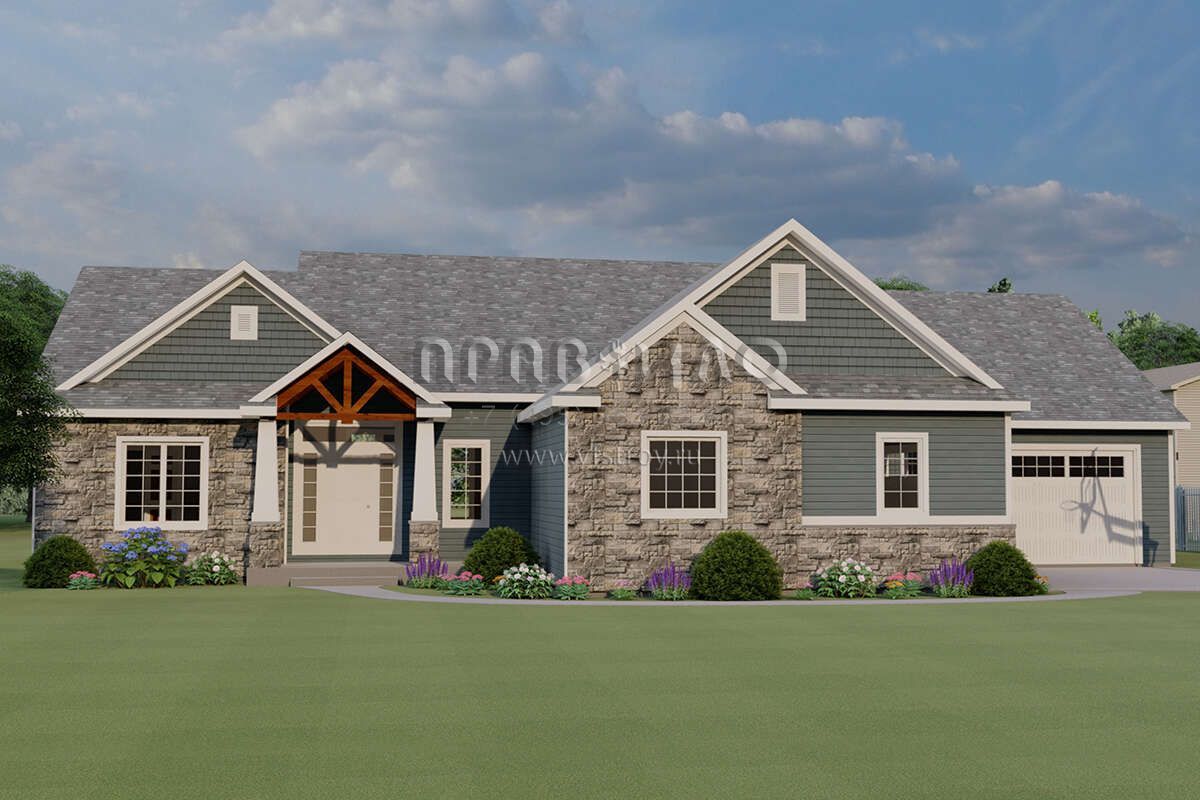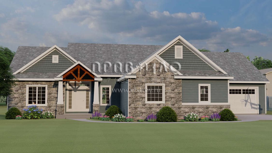 Проект одноэтажного дома с гаражом на три и более машин в американском стиле S5-195 (5032-00007)