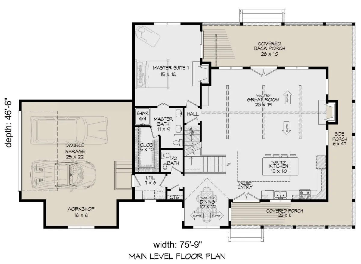 S5-195 (940-00713) Это иностранный проект, для которого требуется адаптация под нормы, действующие в Российской Федерации. Вы видите проект дома в стиле Ранчо. В этом доме сочетаются черты сельской постройки и аскетичность лофта. Внутри жильцы смогут проводить время с максимальным комфортом. Обратим внимание, что сейчас на планировках все размеры представлены в футах. Для перевода в метры вам необходимо значение в футах умножить на 0,3048.