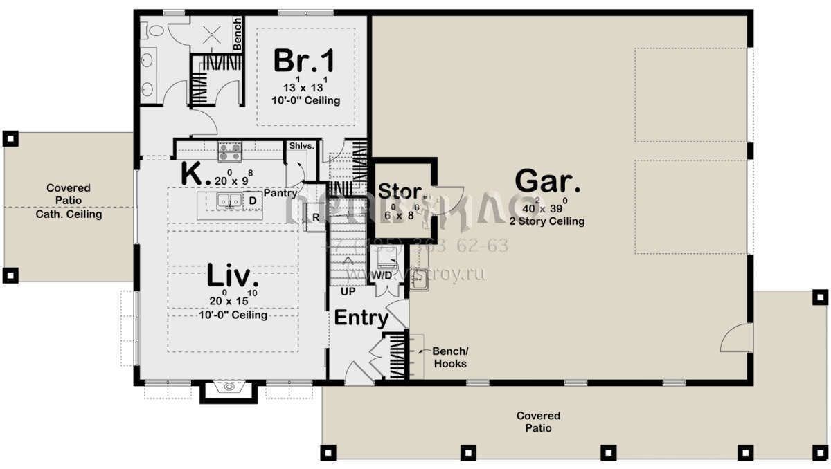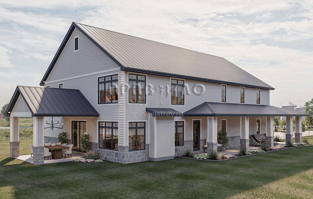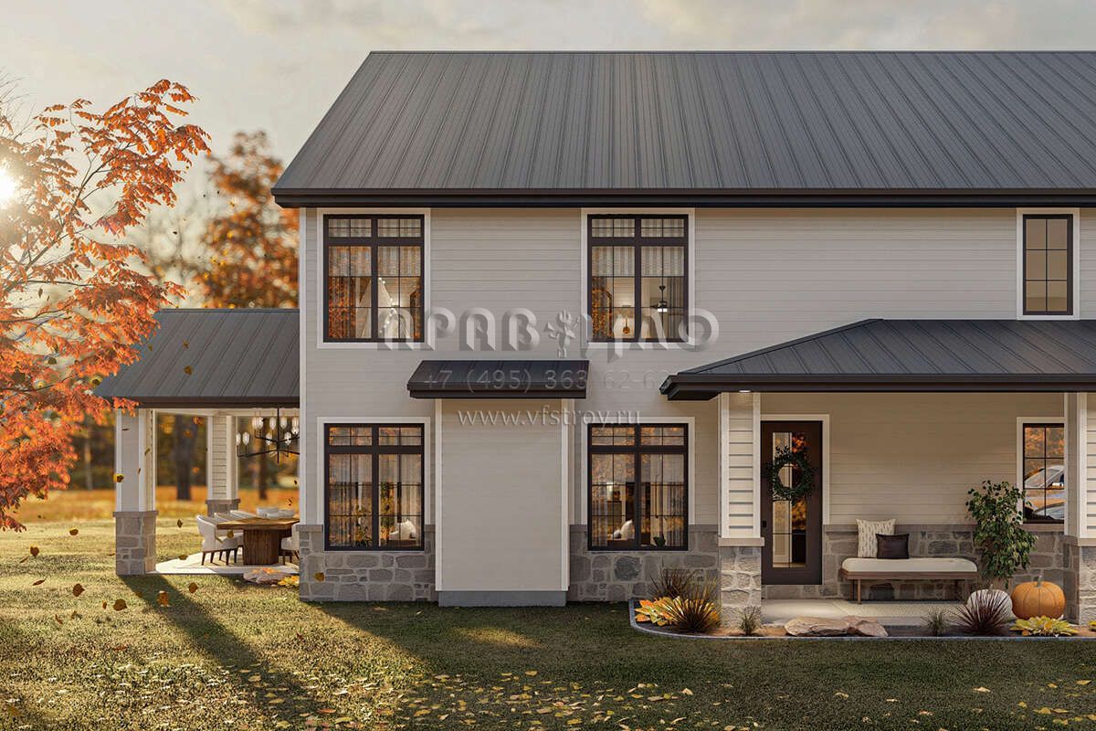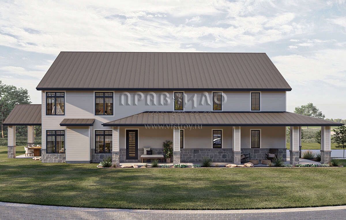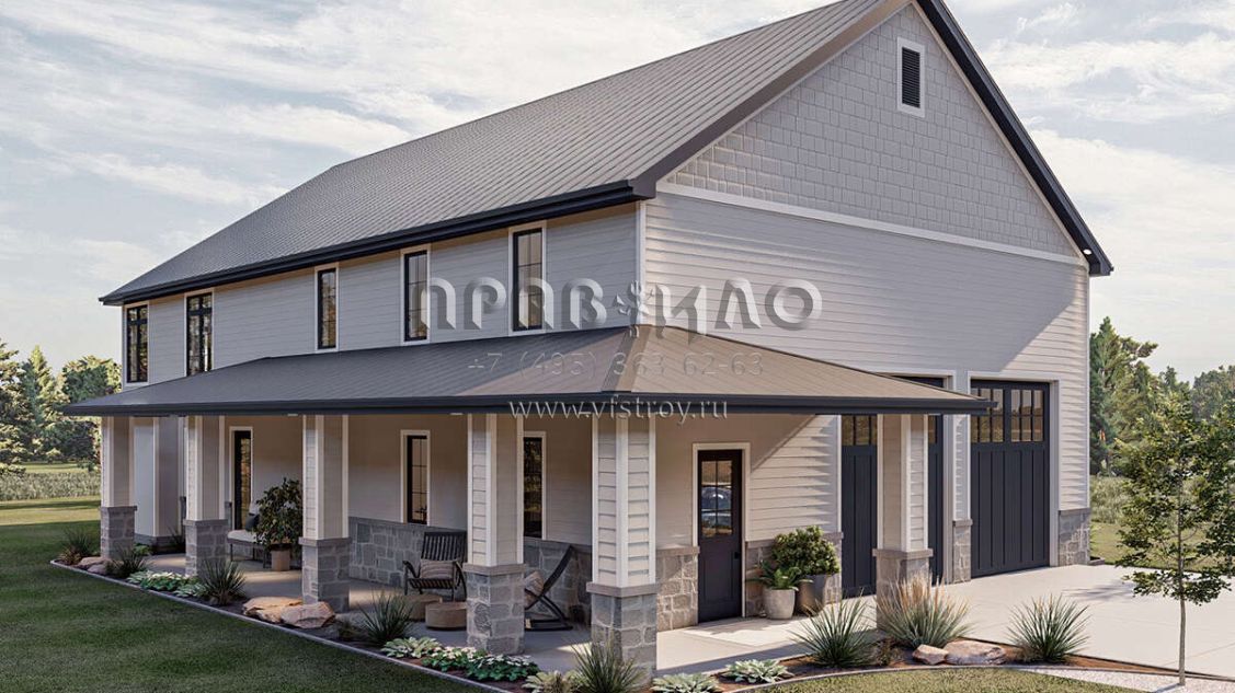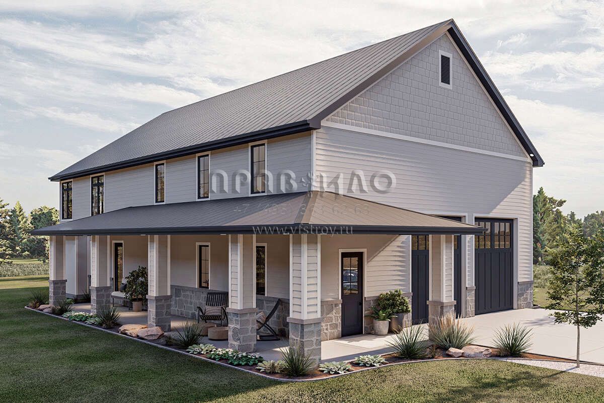 Проект двухэтажного дома с гаражом на две машины в стиле БарнХаус S5-195 (963-00726)