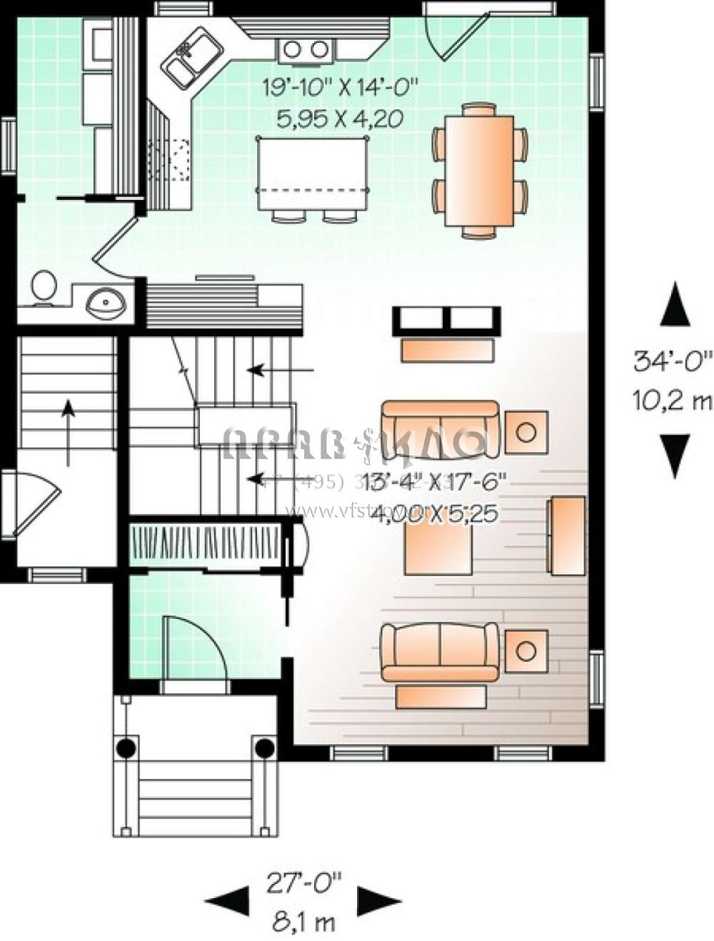 Проект двухэтажного дома без гаража в стиле Ранчо S5-196 (034-00475)