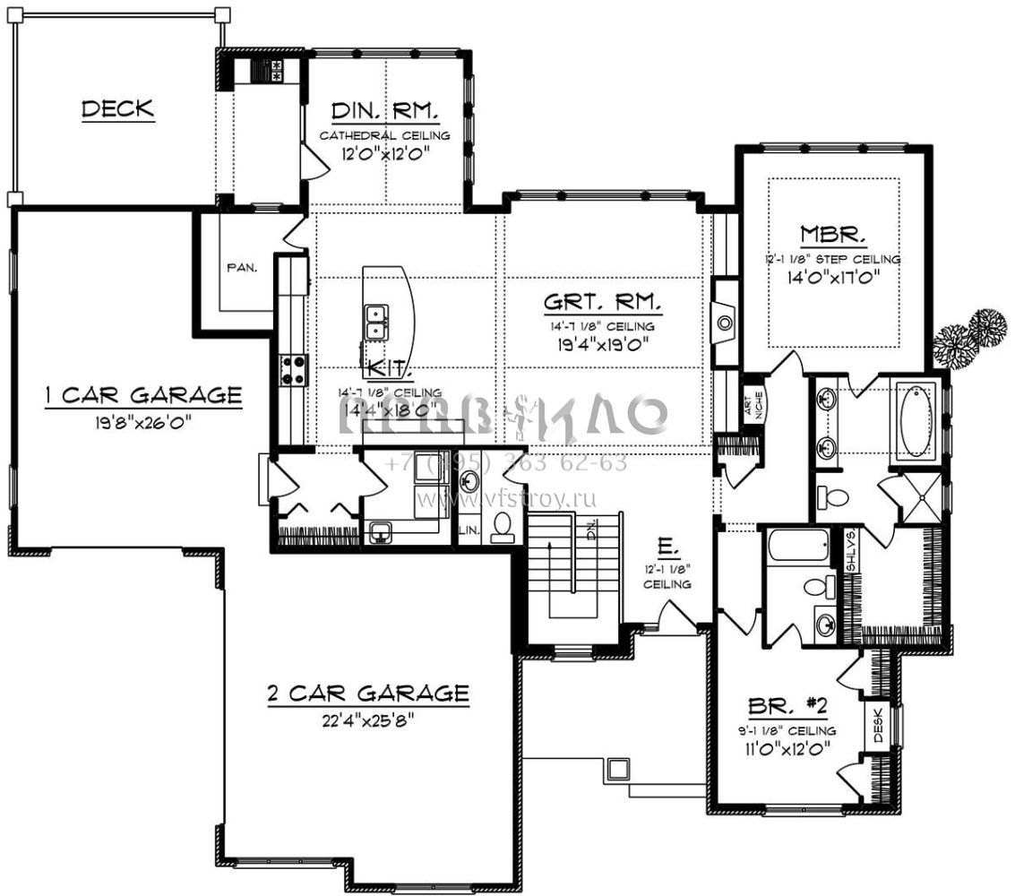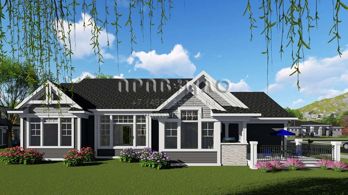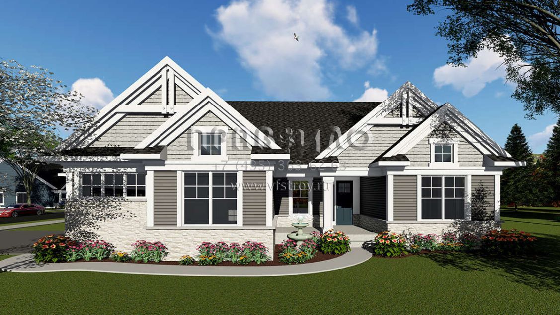 Проект одноэтажного дома с гаражом на три и более машин в американском стиле S5-196 (1020-00030)