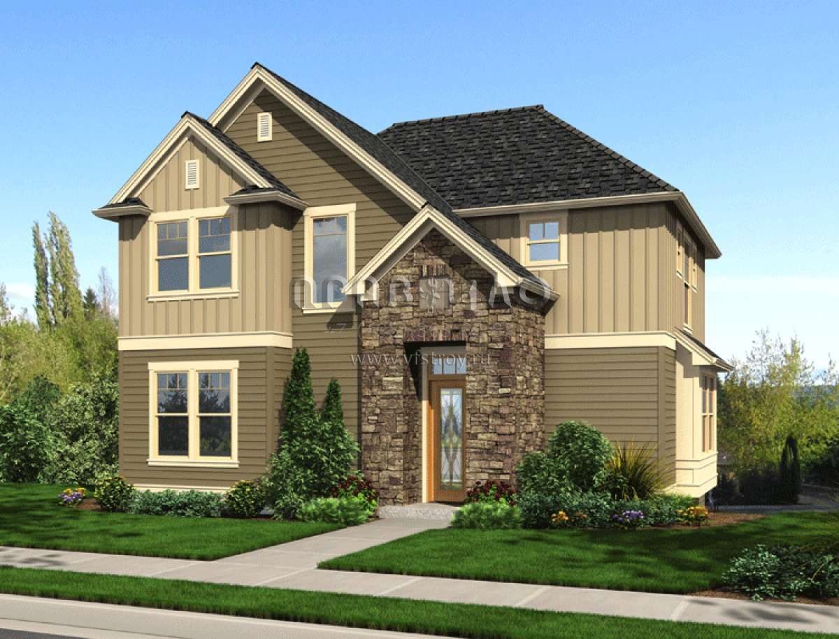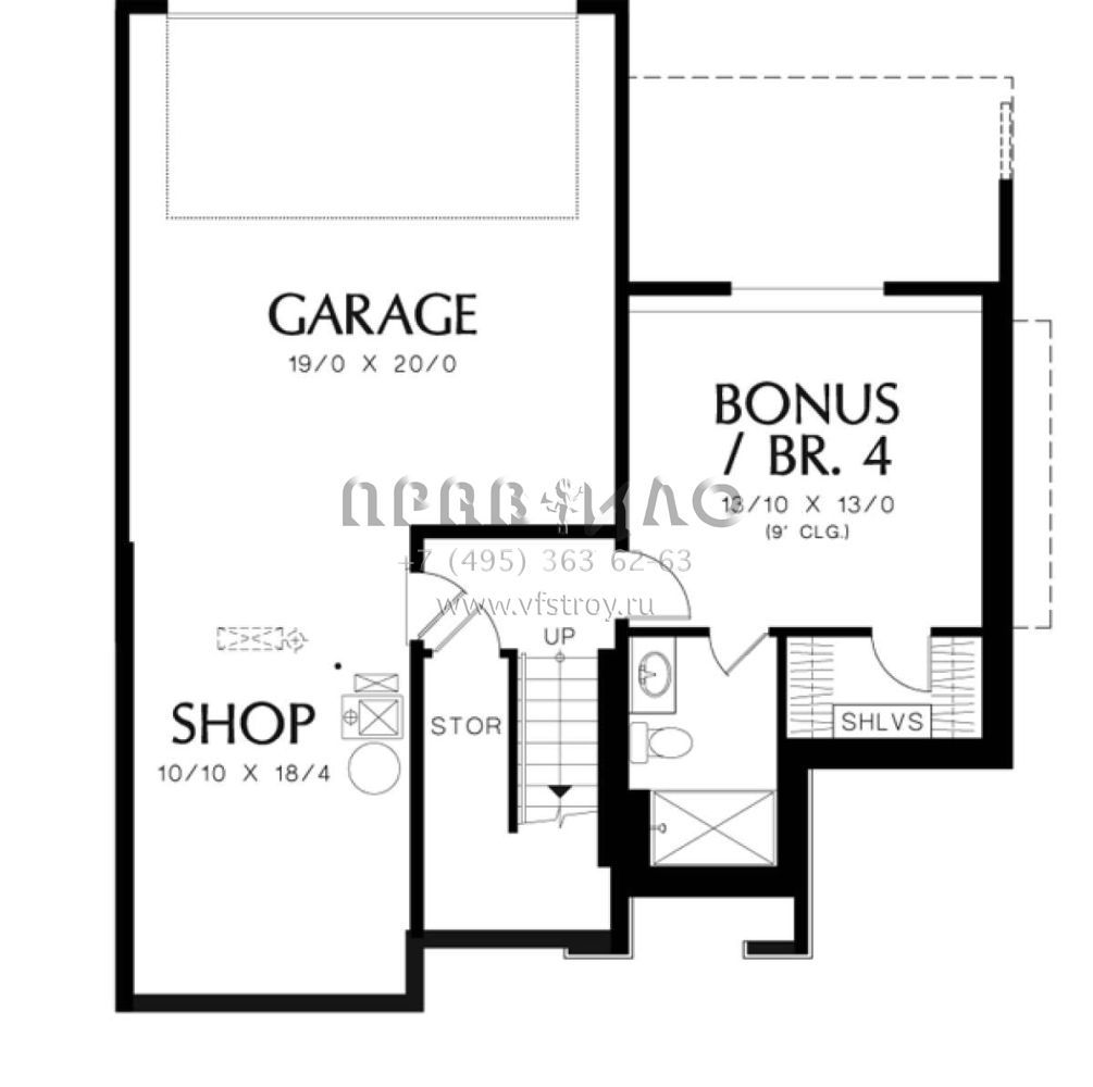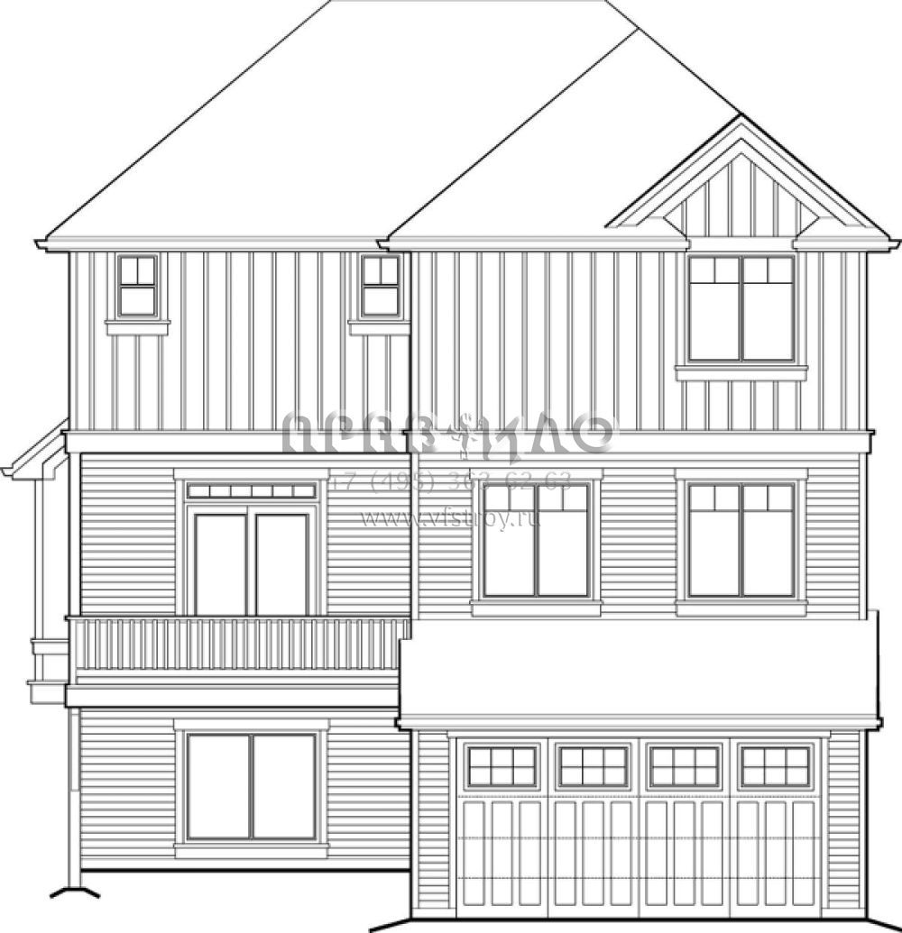 Проект трехэтажного дома с гаражом на три и более машин в стиле Ранчо S5-196 (2559-00044)